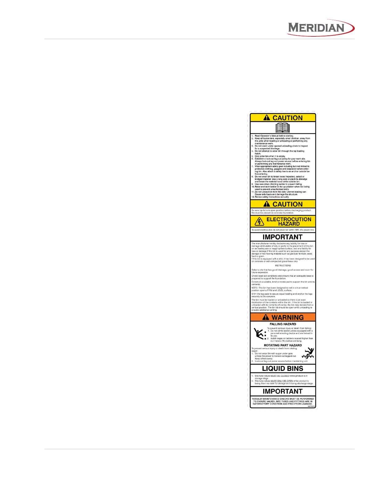 Safety decals are attached to the structure in a