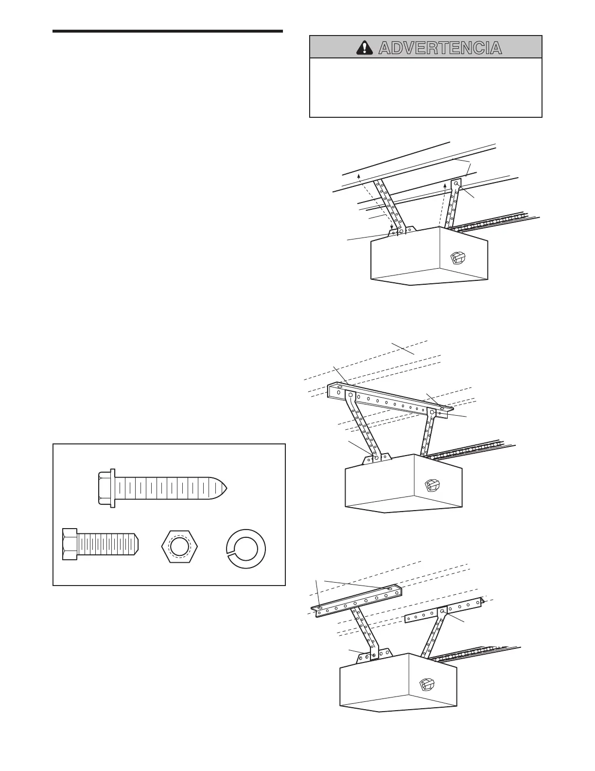 abre-puertas de garaje, sujételo FIRMEMENTE a los soportes