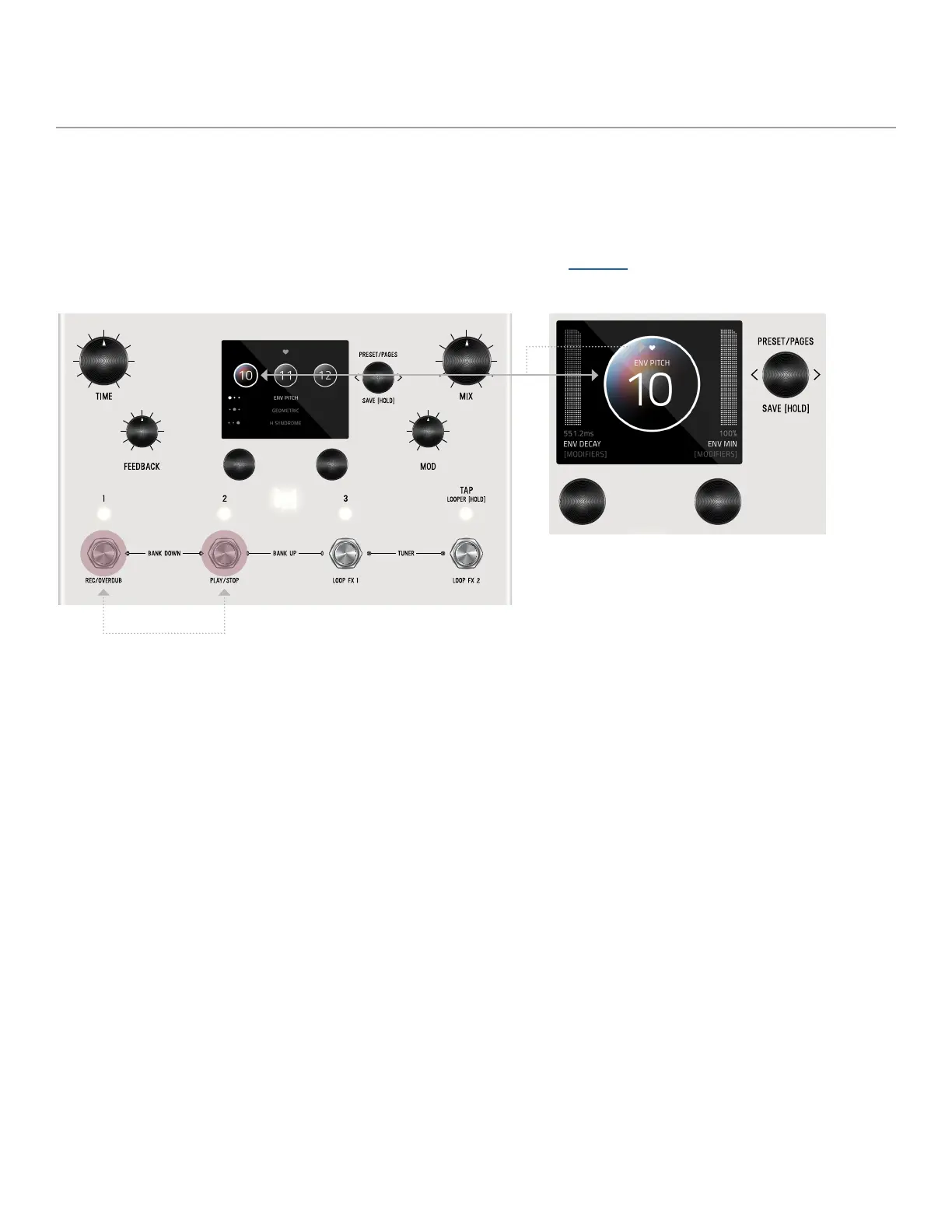 choose which favorite preset to jump to. To bank up, PRESS 2 + 3 at the same time. To bank down, PRESS 1 + 2 at the same