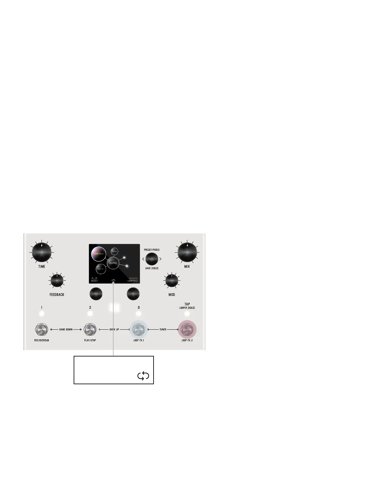 playback. The functions for footswitch 3 and 4 are assignable on the Looper page in Edit View. For footswitch 3 (Looper FX