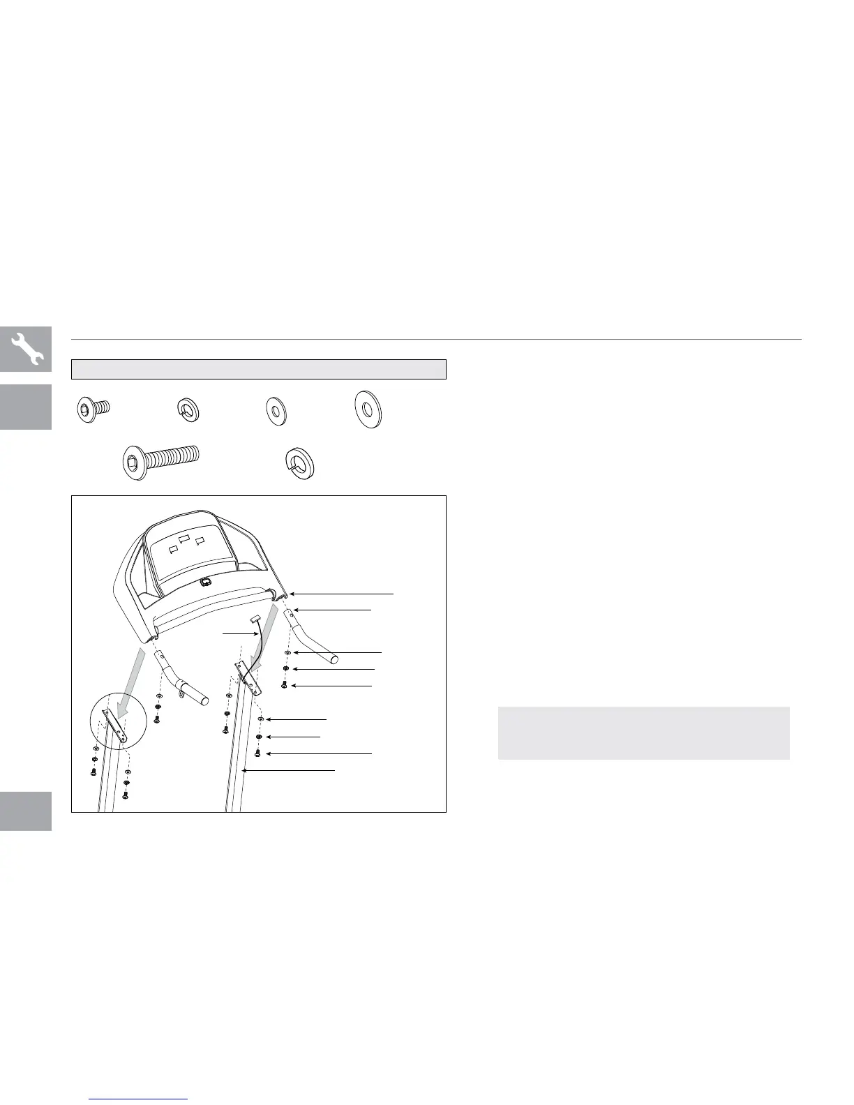 la consola y fíjelas con 2 tornillos (e), 2