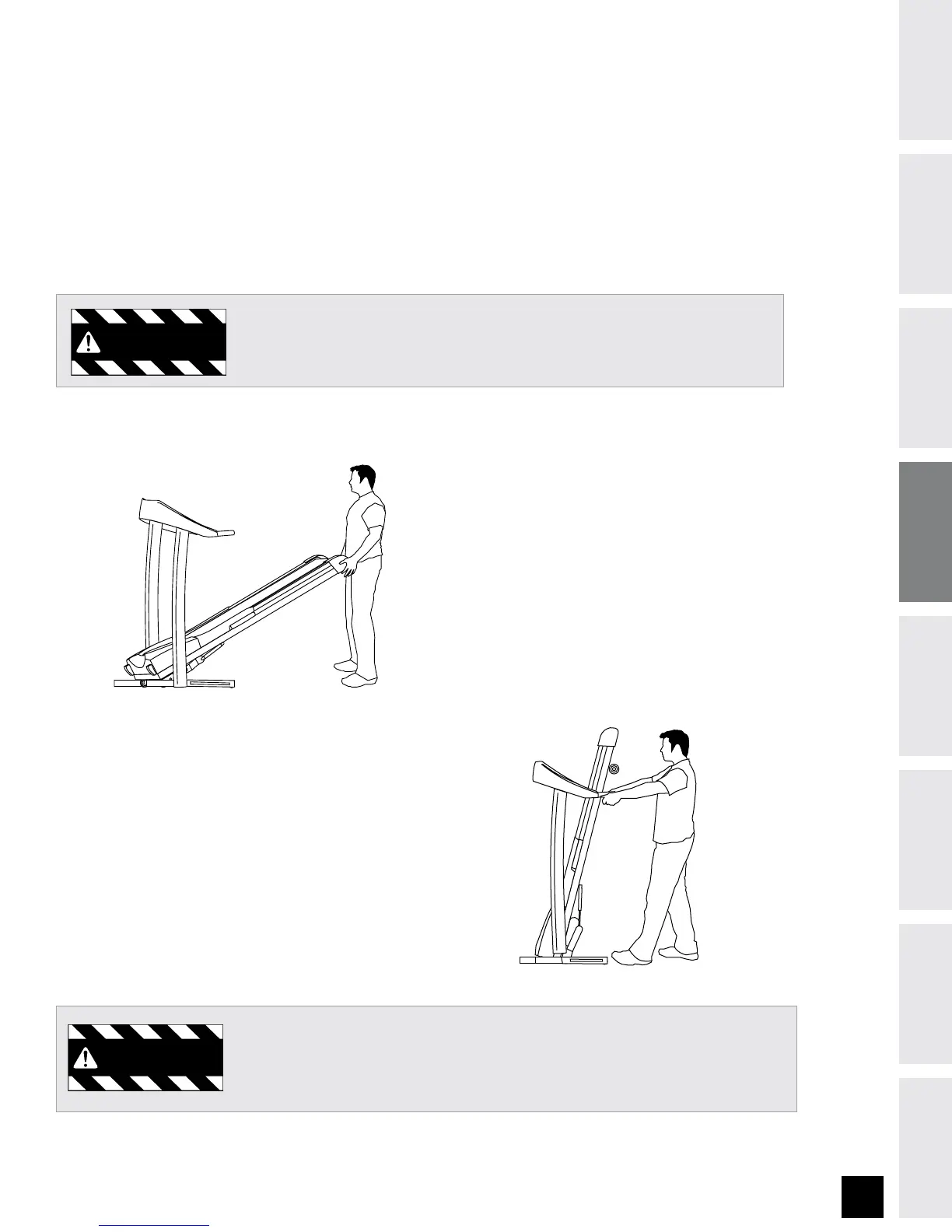 NOTE: Do not raise, lower, or move the treadmill if you are unable to safely lift 45 pounds.