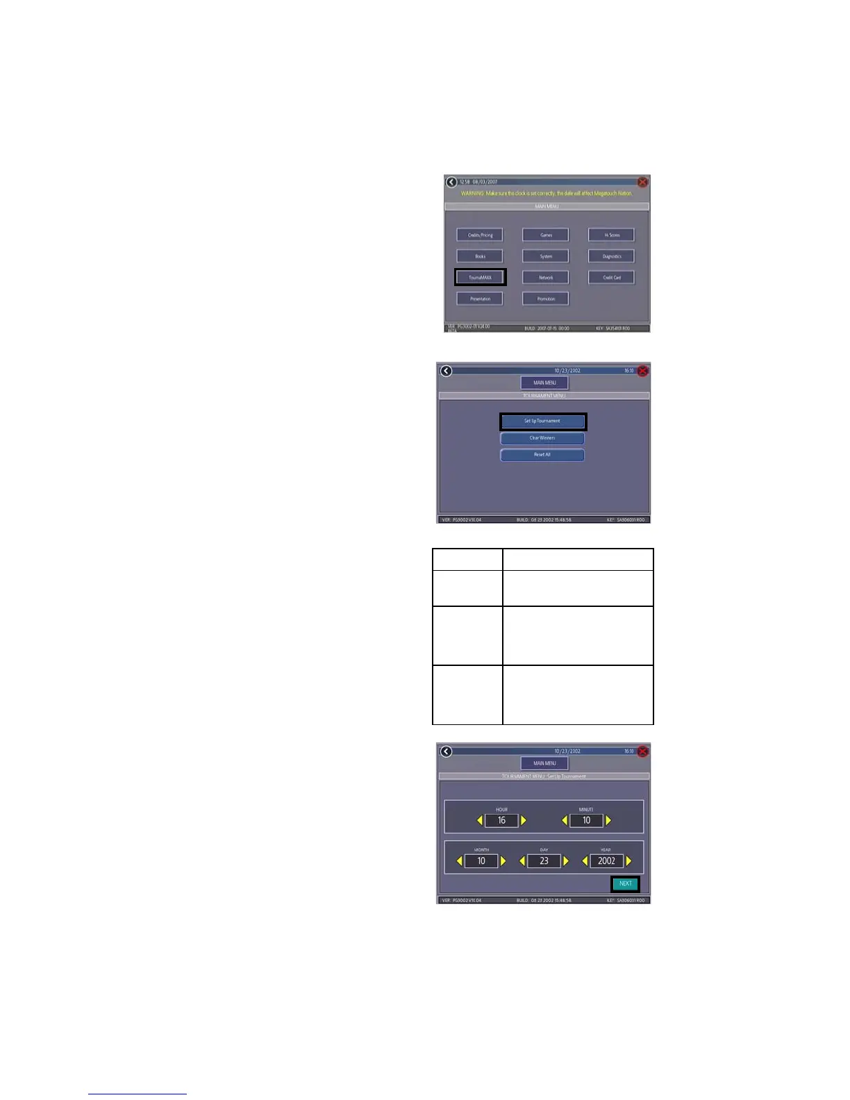 3. At the TOURNAMAXX MENU, touch the