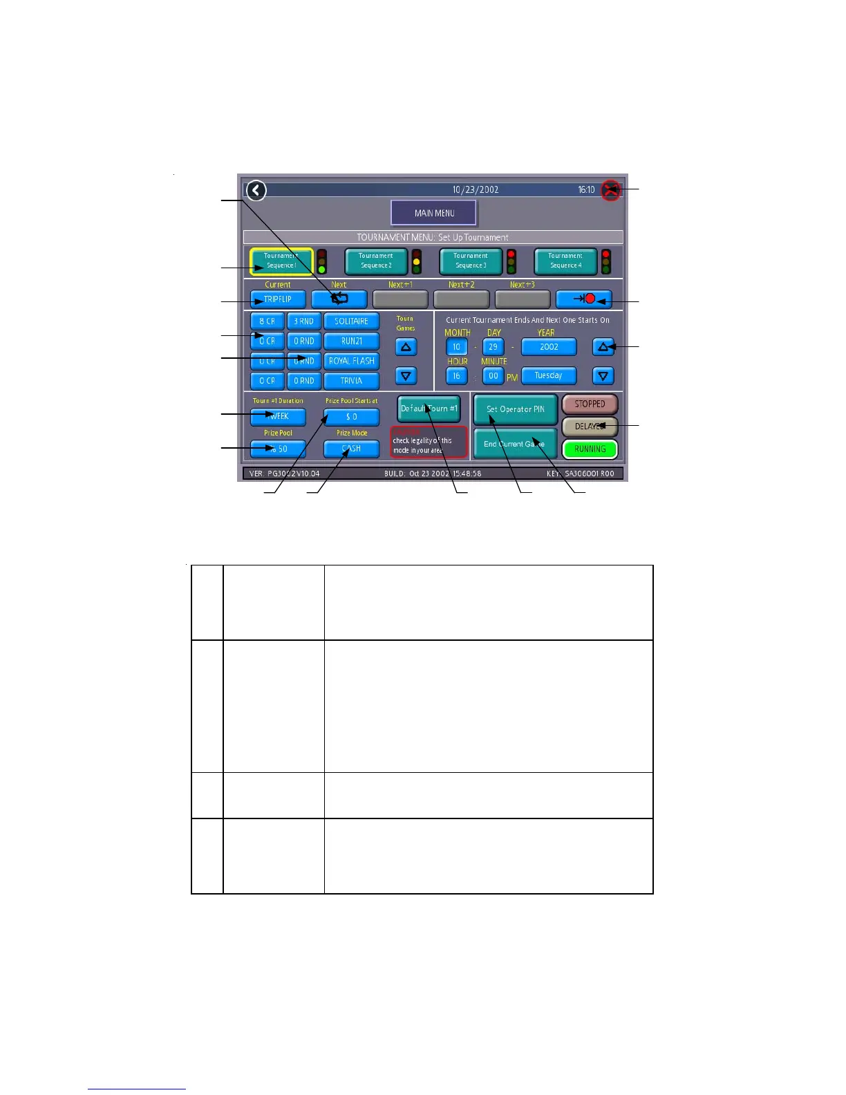 Touch a “Tournament Sequence #” to program the