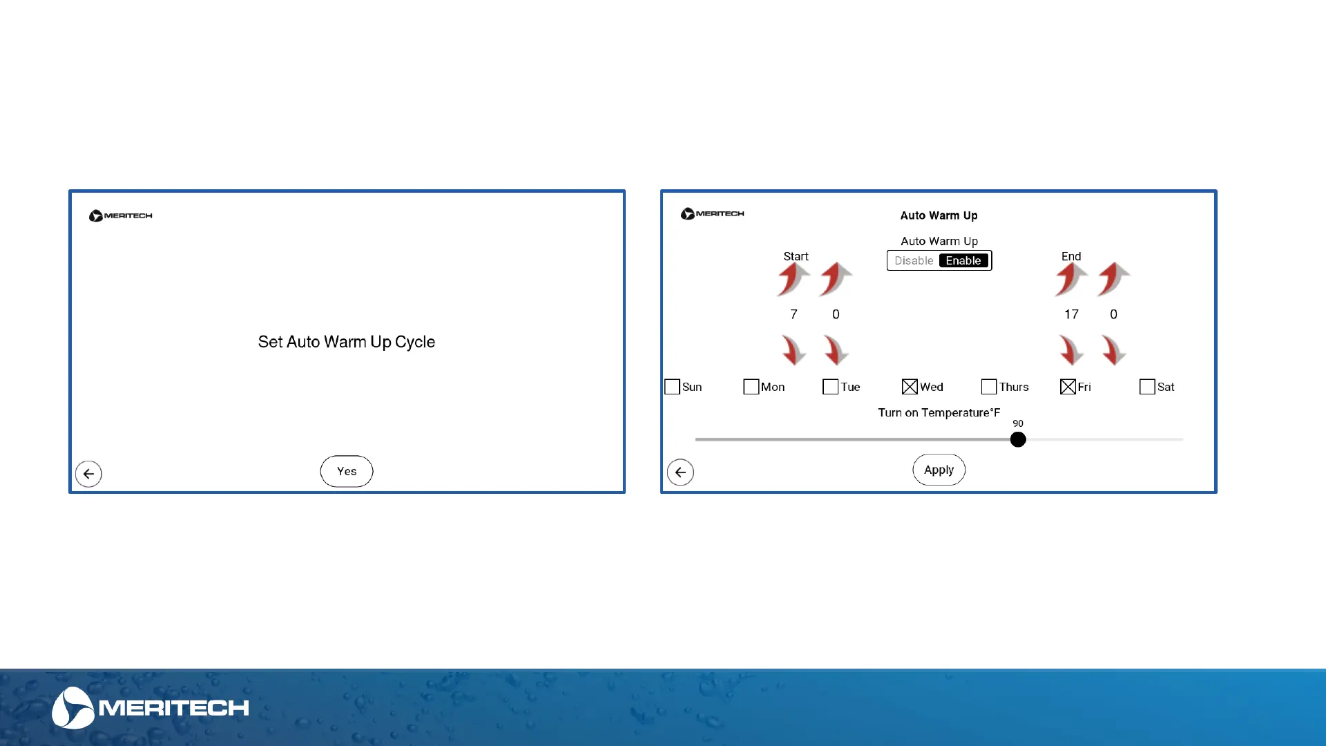 Configuring the Auto Warm Up Cycle will allow you to customize the specific days and times that the handwashing station needs to be at the optimum