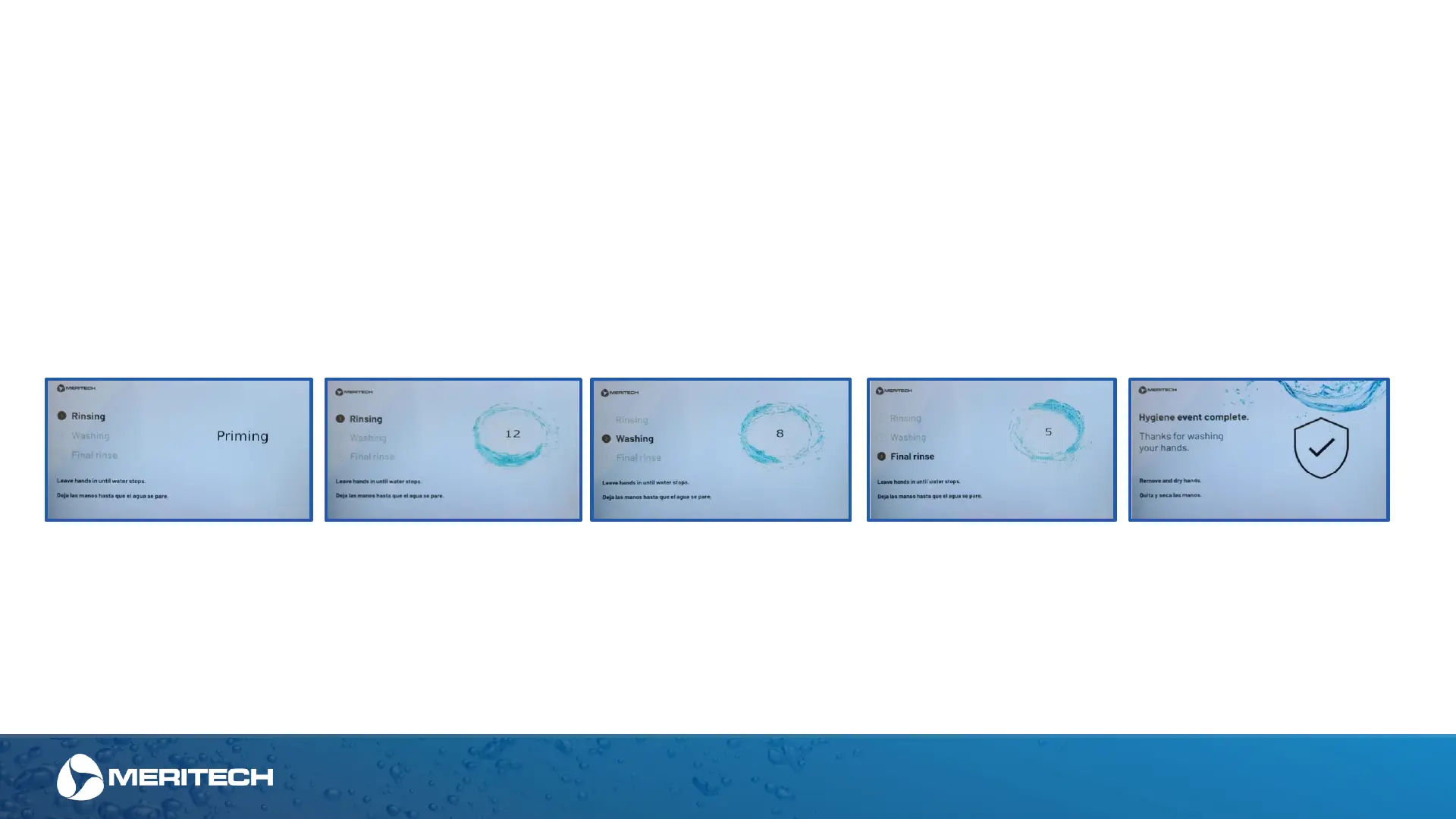 with water. This is followed immediately by the 12 second automated hand wash cycle with rinsing, washing and final rinse.