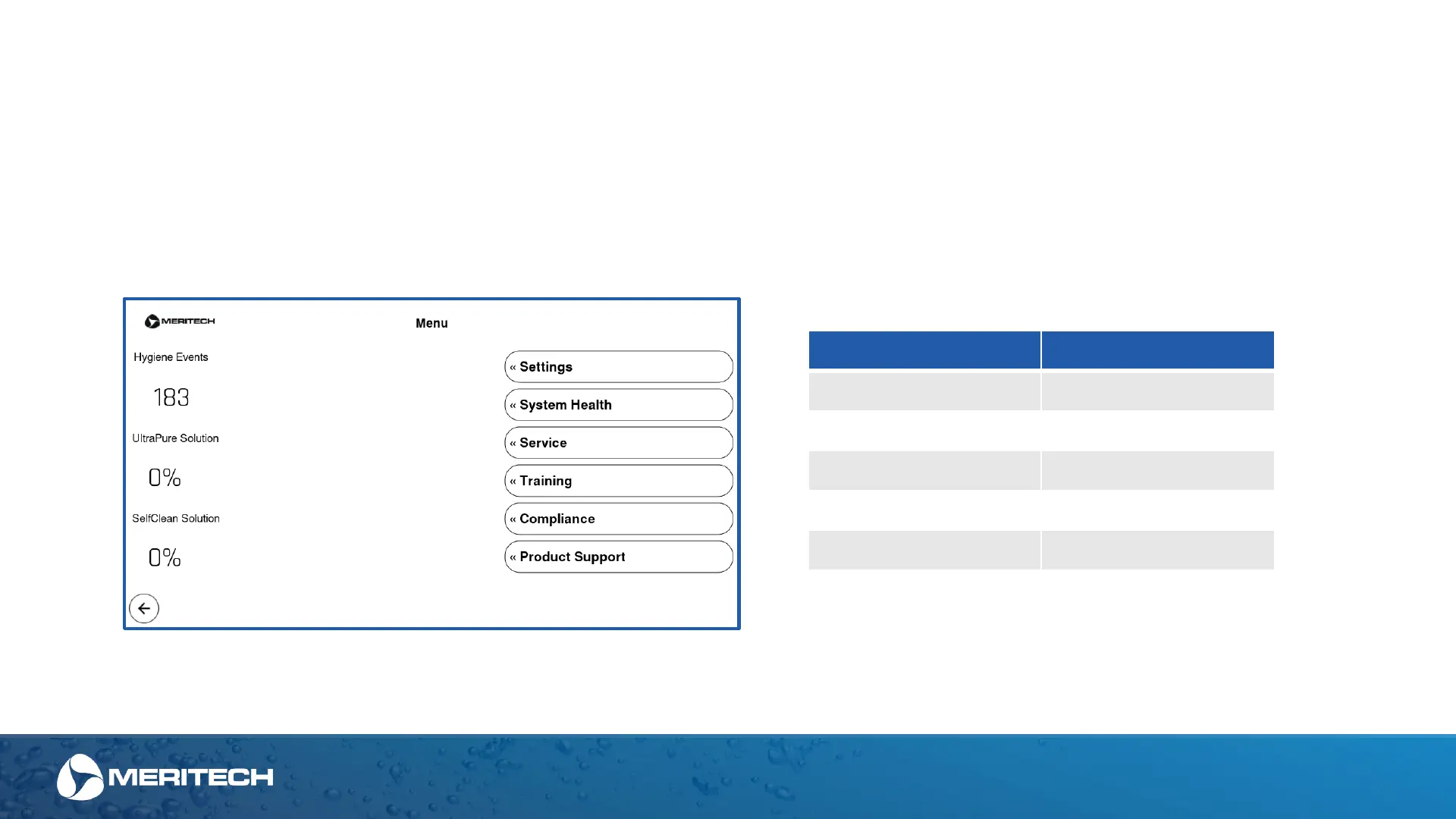 MERITECH CleanTech EVO Wall - Administrative Main Menu