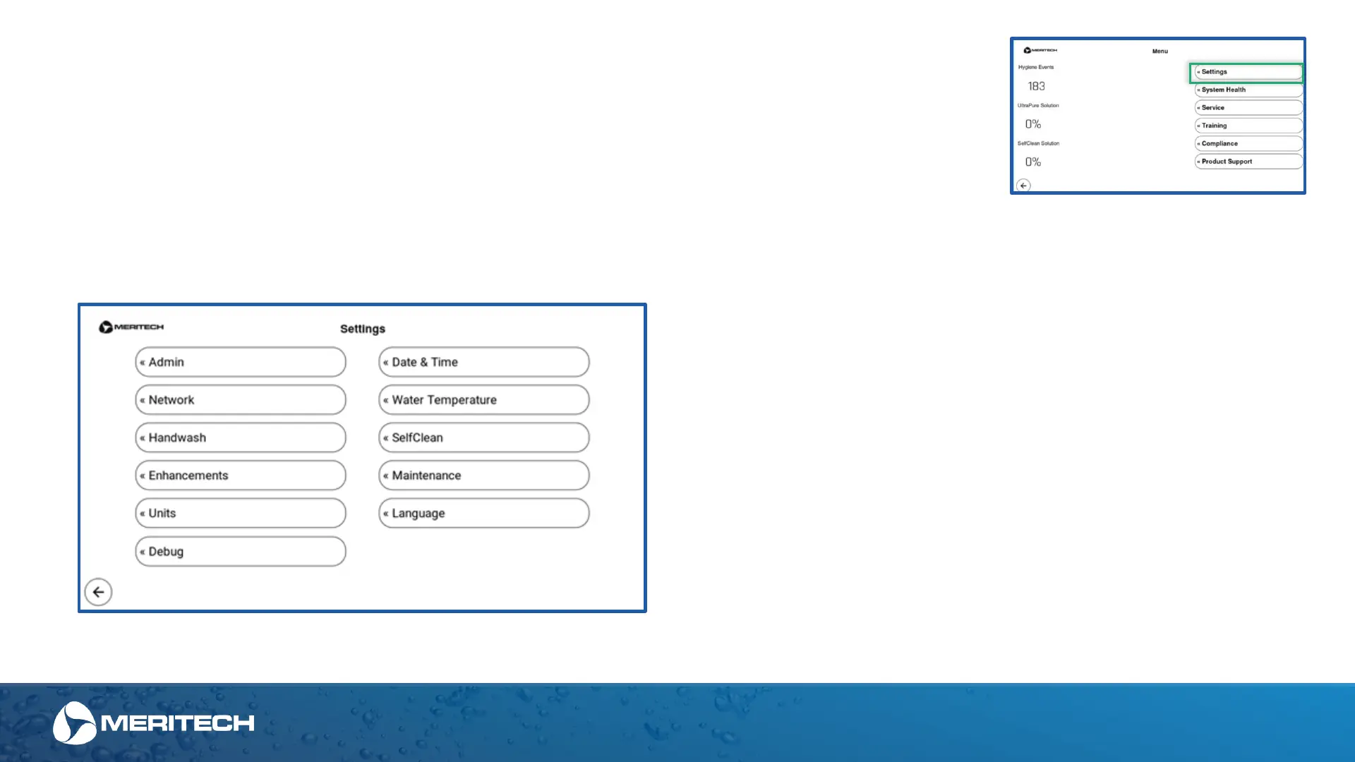 * Menus only accessible by Meritech Technicians