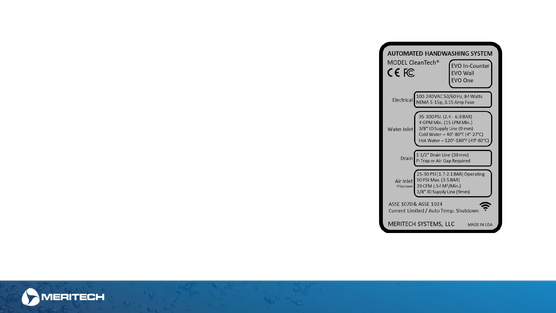 • Note: Consult Meritech if connecting more than 2 system on the same water lines