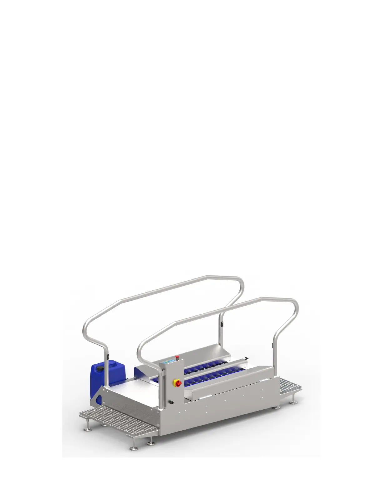 Each Boot Scrubber is complete with handrails, emergency stop button, Photoeye operated, as well as long