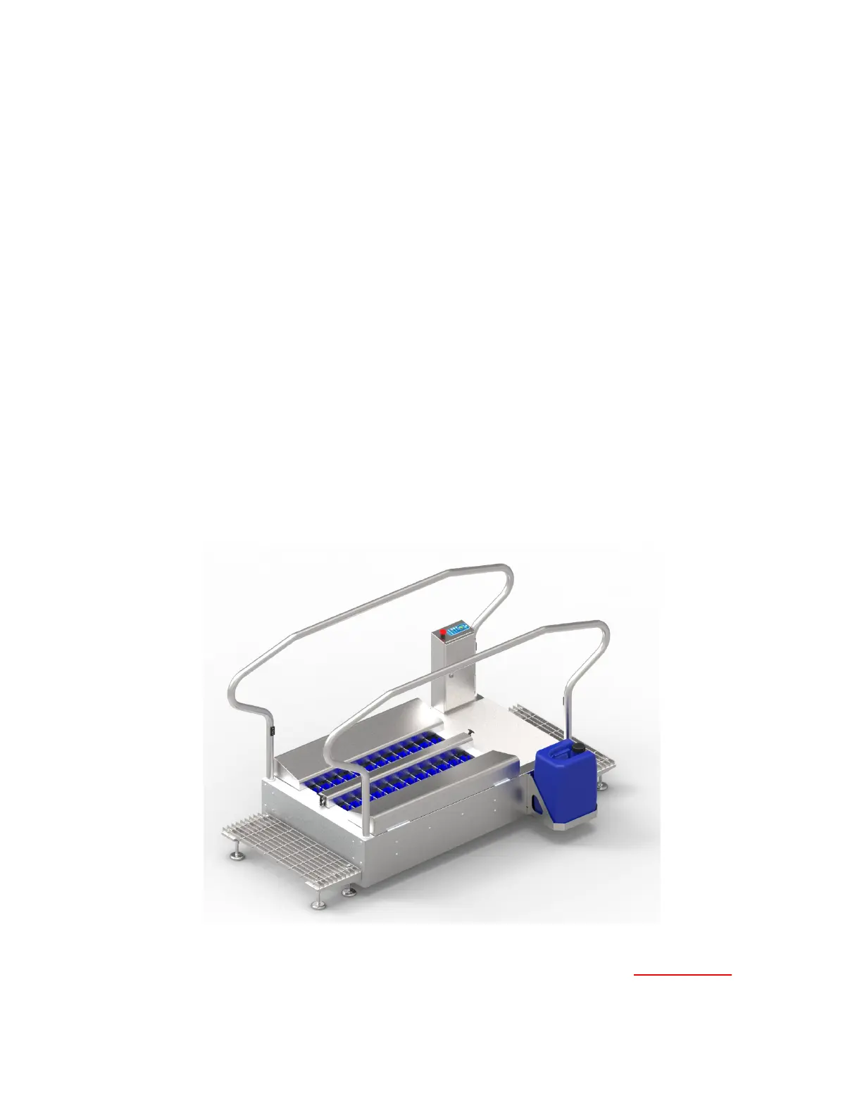 sanitizing spray will wash each of the horizontal sole brushes. The system will run for approximately 8 seconds