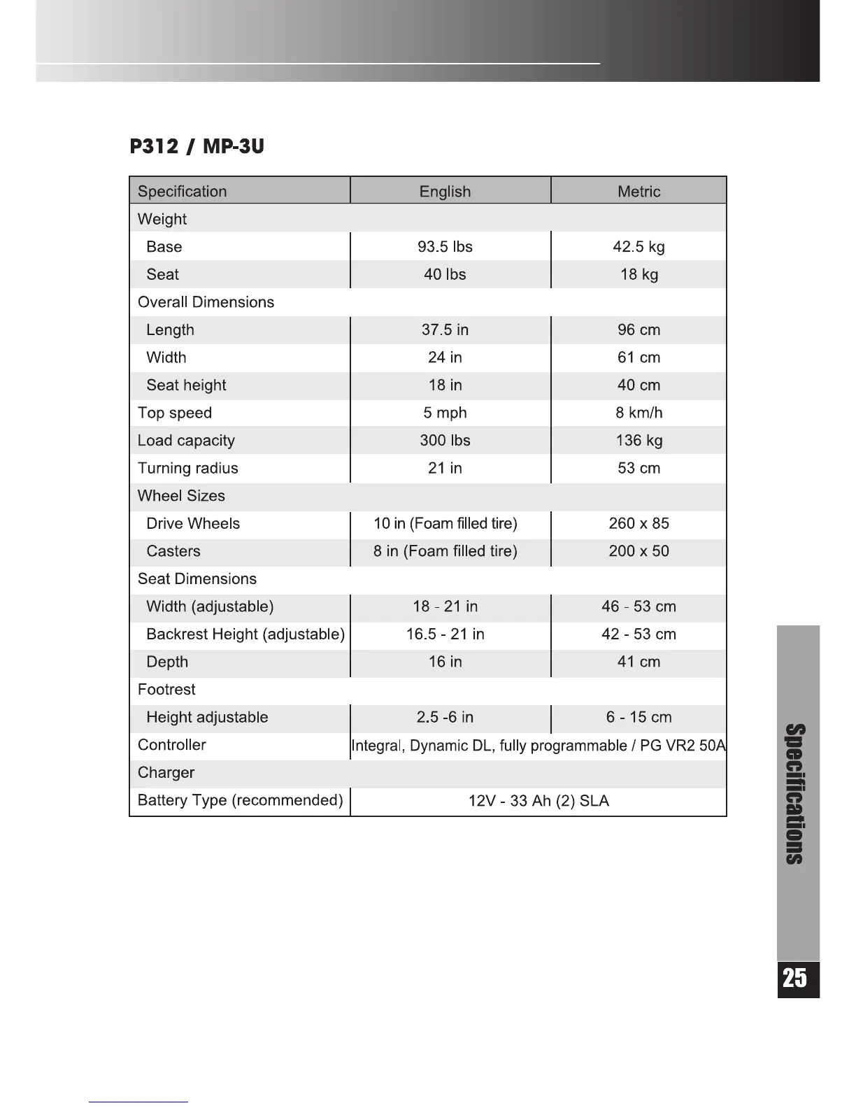 Merits P312 - Specifications