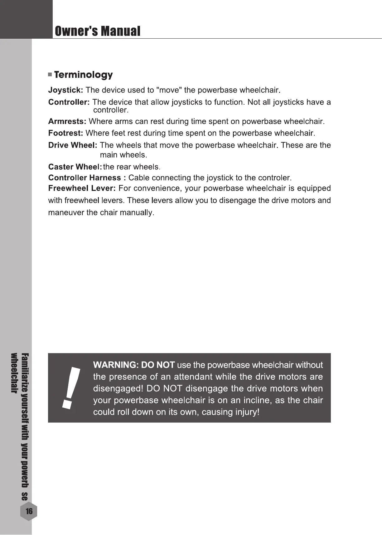Braking information: 1) Running brake: Your electrical wheelchair is equipped