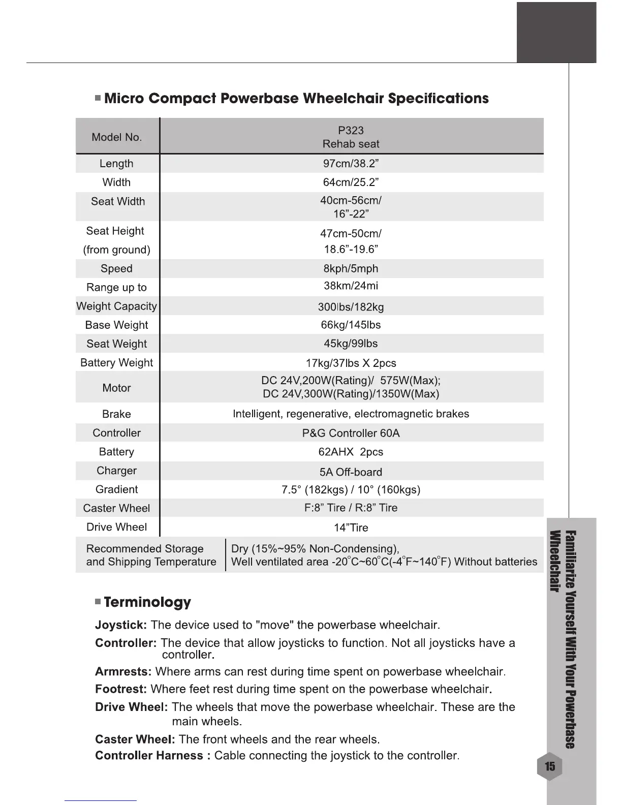 Merits P323 - Micro Compact Powerbase Wheelchair Specifications; Terminology
