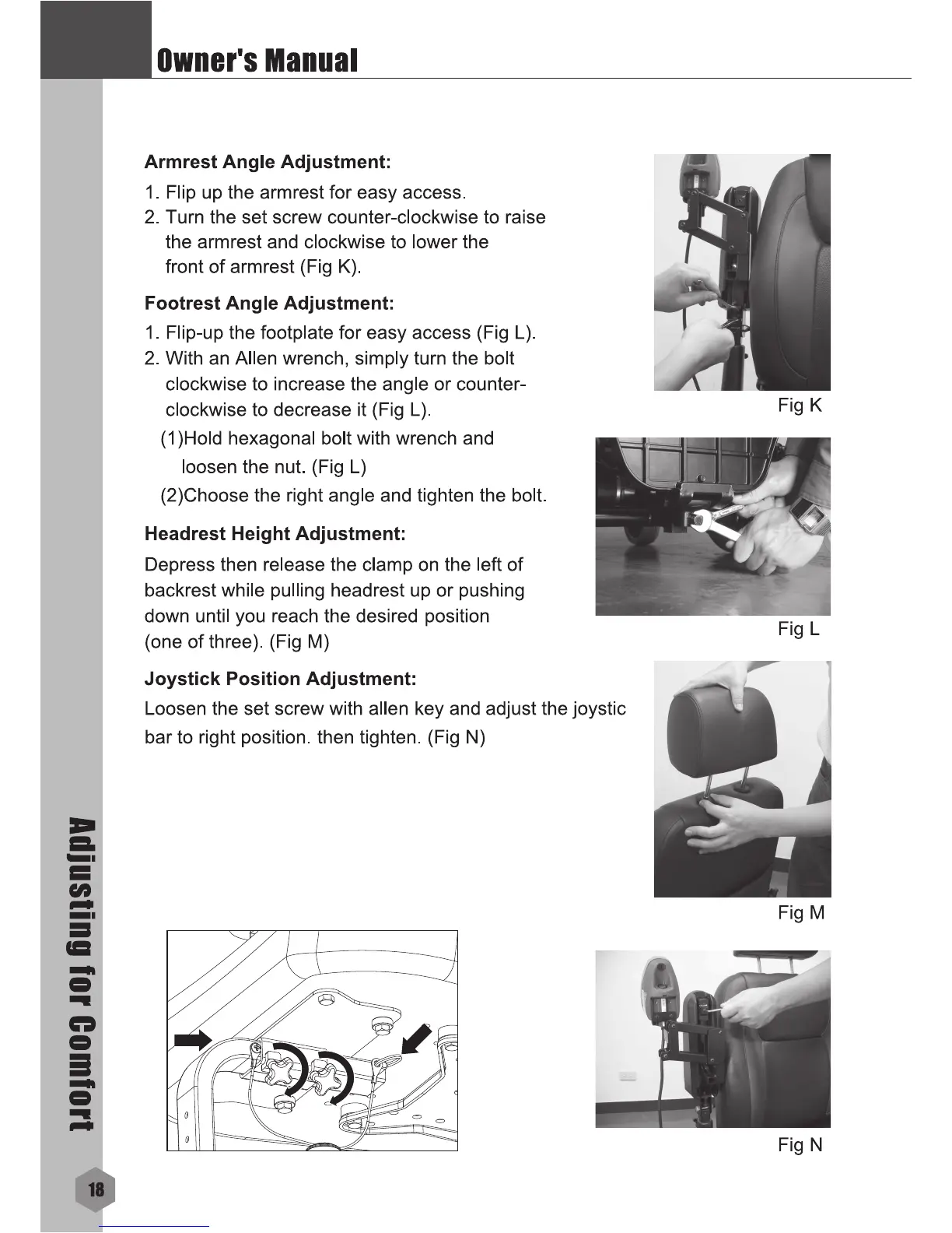 Merits P326A - Armrest, Footrest, Headrest Adjustments; Joystick and Footrest Position Adjustment