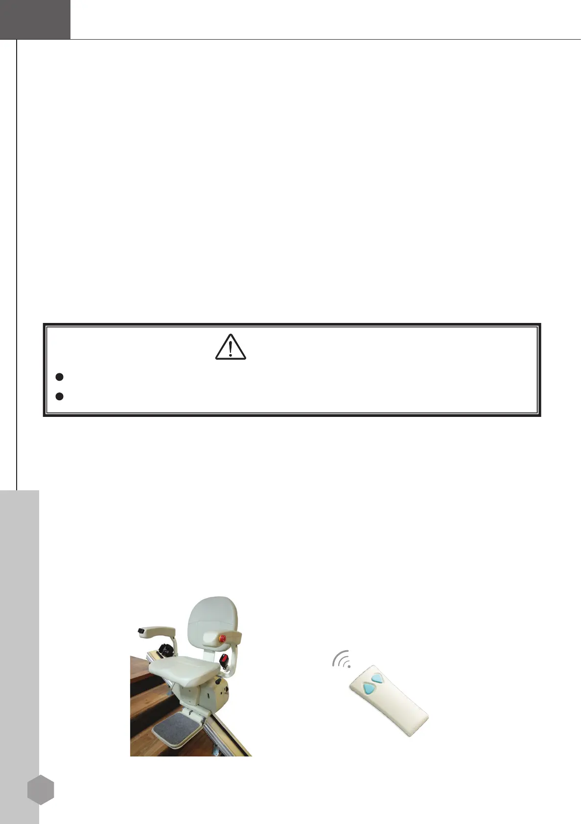 There are two remote controllers allow you to “call” or “send” the stairlift. Point the