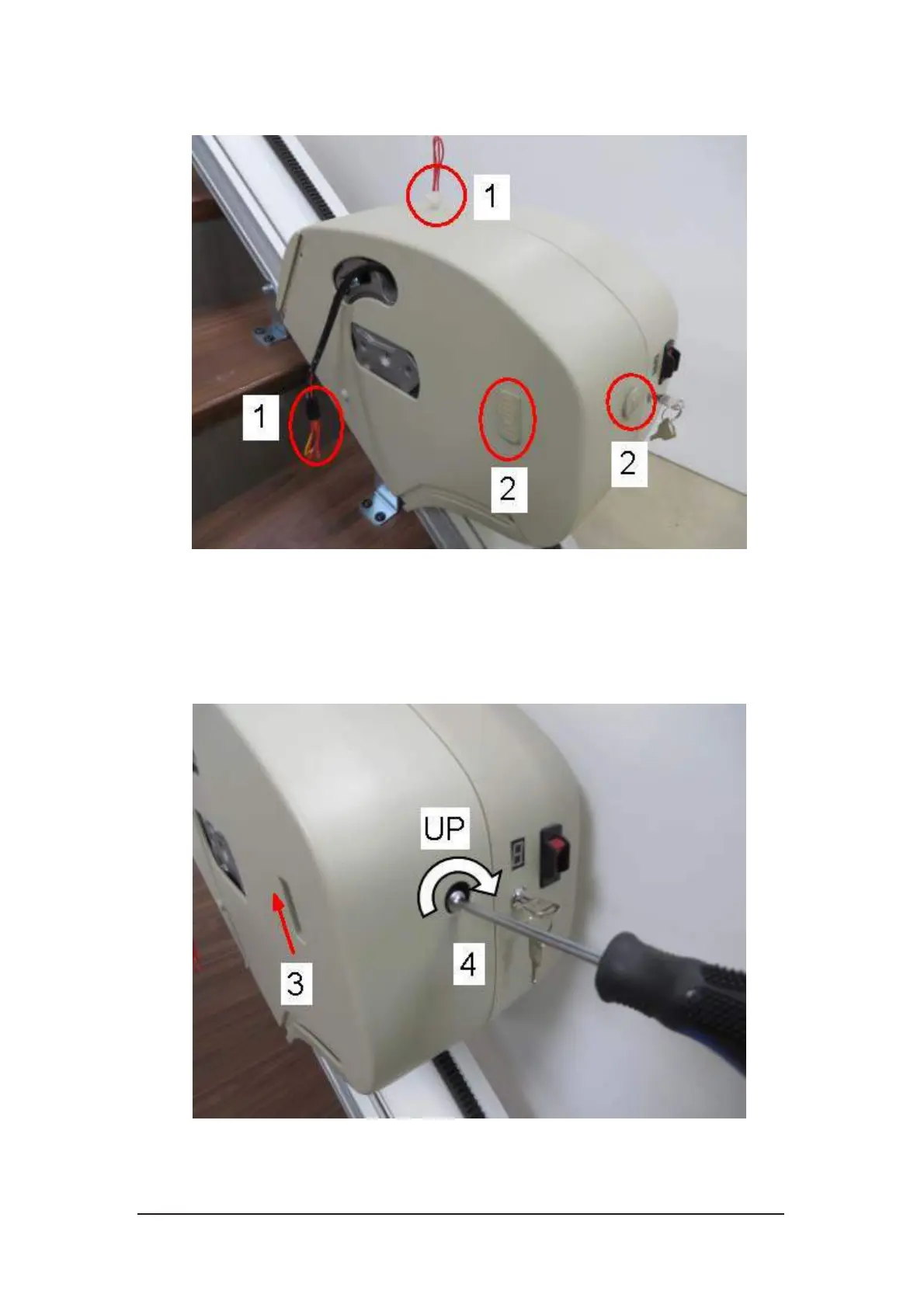 Merits Pilot - Figure 4-36 Carriage Jumpers and Rubber Plugs; Figure 4-37 Move Carriage up by Hand Crank
