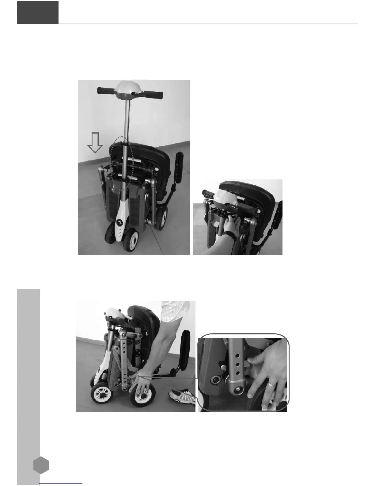 Step 2: Press down the Release Handle above the Rear Wheel to unlock
