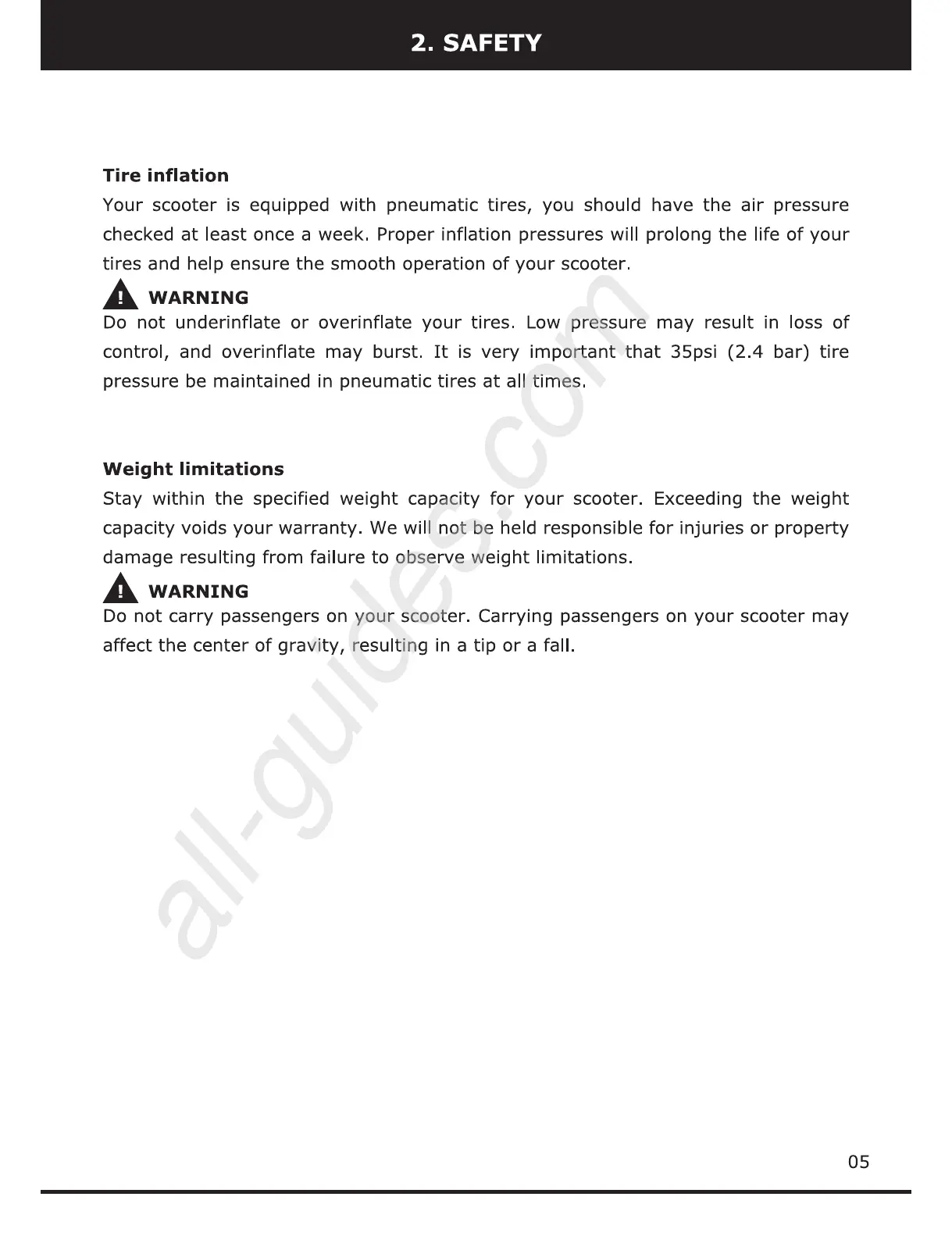 Merits S941 - Tire Inflation Guidelines; Weight Capacity Limits