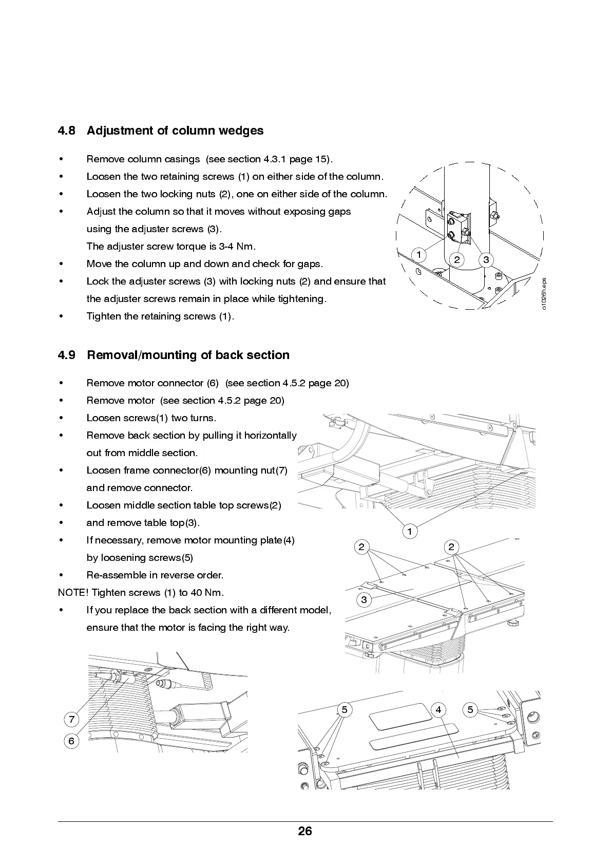4.8 Adjustment of column wedges