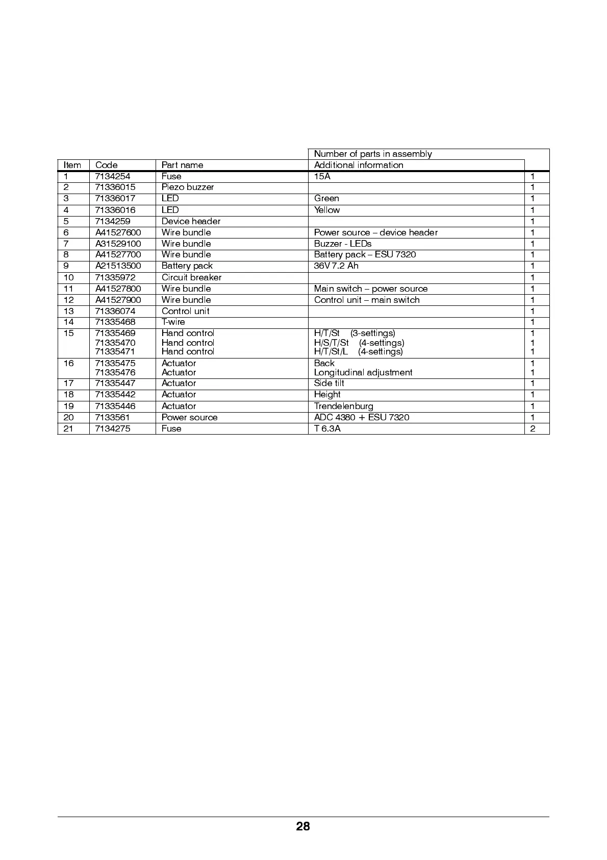 Item Cod e Part name Additio n al info rma ti on