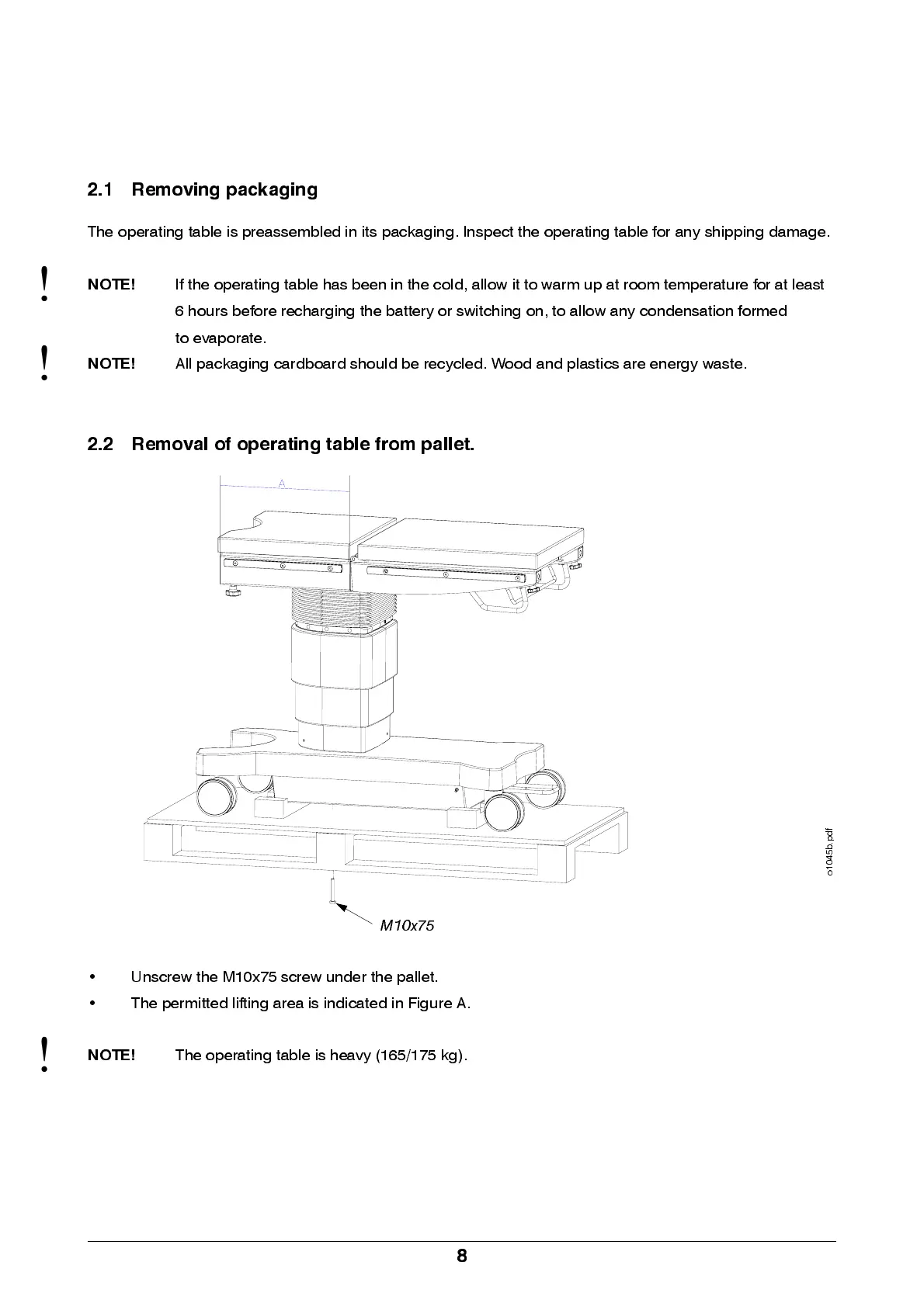 The operating table is preassembled in its packaging. Inspect the operating table for any shipping damage.