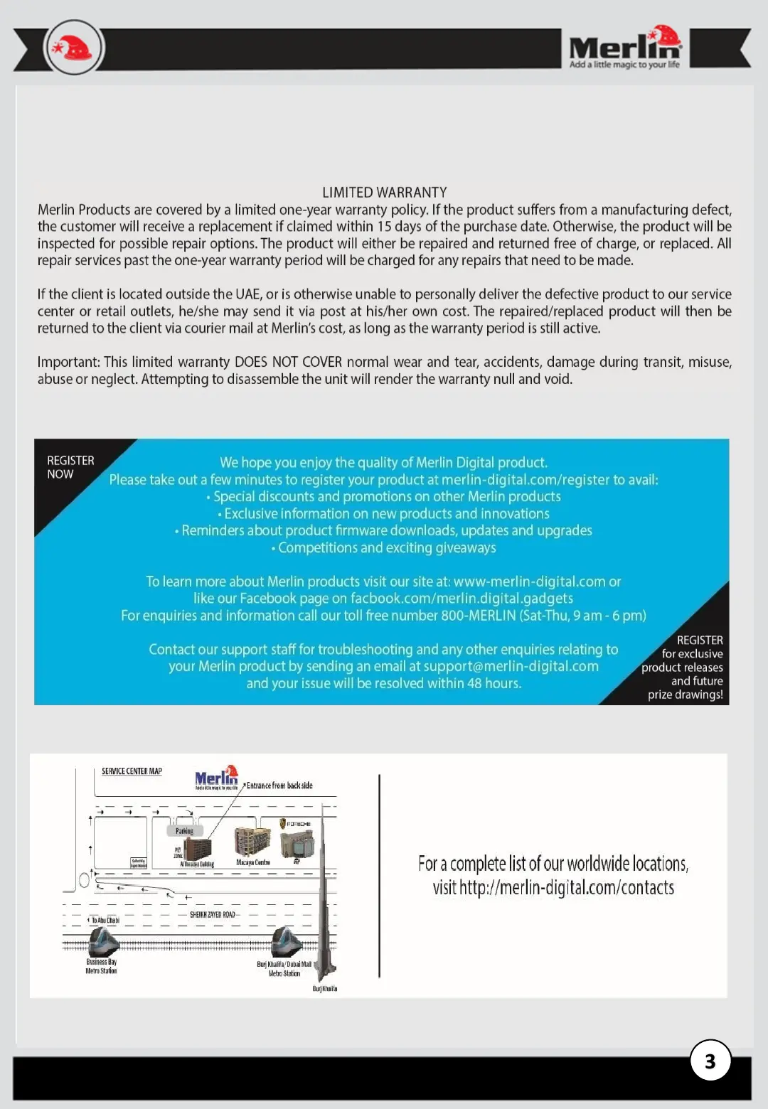 Merlin Cube Pro - Limited Warranty and Registration; Warranty Policy; Product Registration; Support and Contact