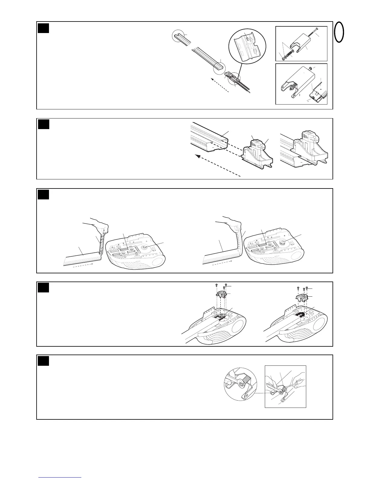 Holding chain (4) and belt (5) out of the way, slide rail (1) onto shim (2) until rail is secure. Take the chain/belt and wrap it