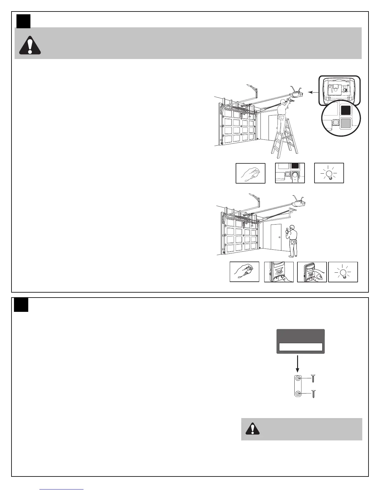 enter or leave garage while door is in motion. Do not allow children to operate push button(s) or remote(s).