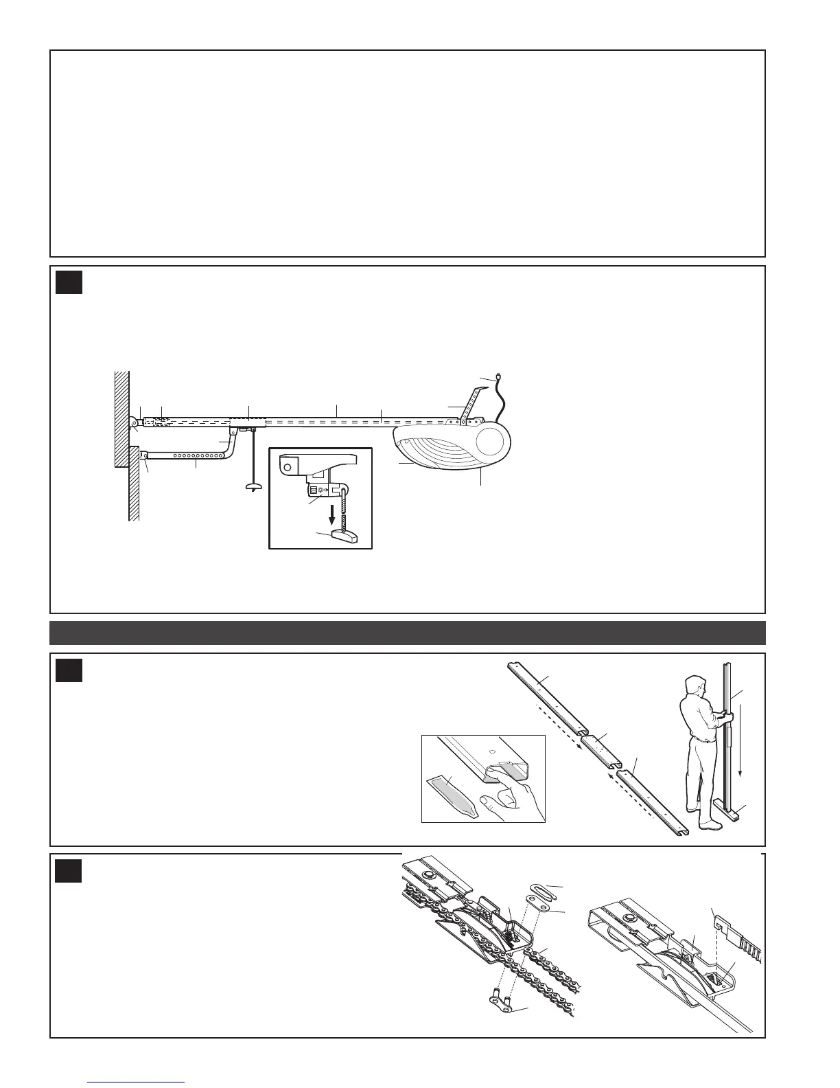 sections are interchangeable. Slide rail brace (3) onto rail