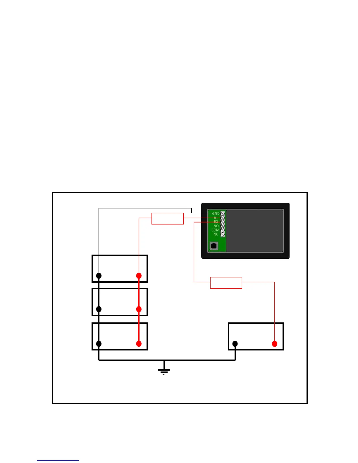 3. If a second battery is to be monitored for voltage, run an additional 18 gauge (AWG) wire,