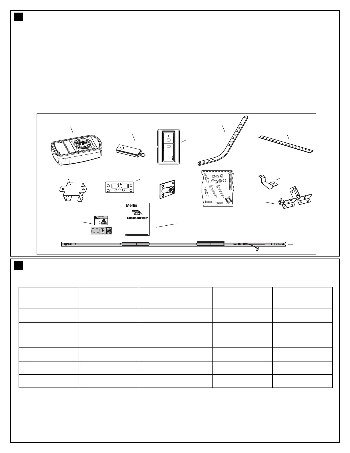 opener, its fitting hardware and accessories. The rail carton contains the rail and some hardware.