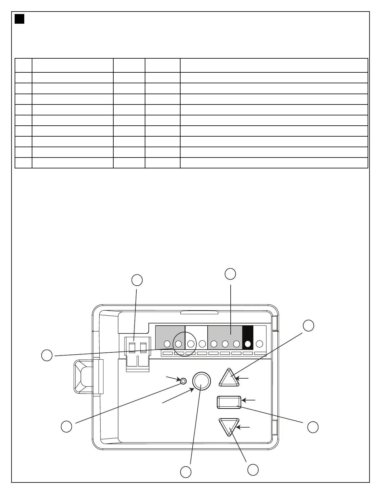 8. Green Button: used to activate the door when remote controls are not available. Open - Stop - Close via finger