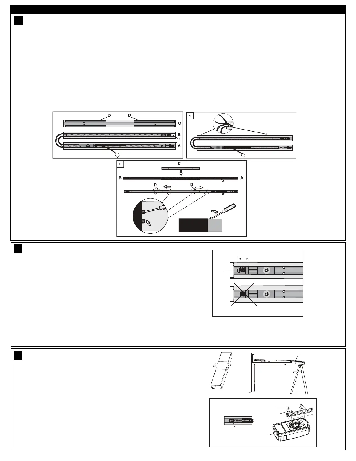 way so as to easily add the middle section. Slide the 2 connecting pieces (D) over the seams of the rail sections up to the