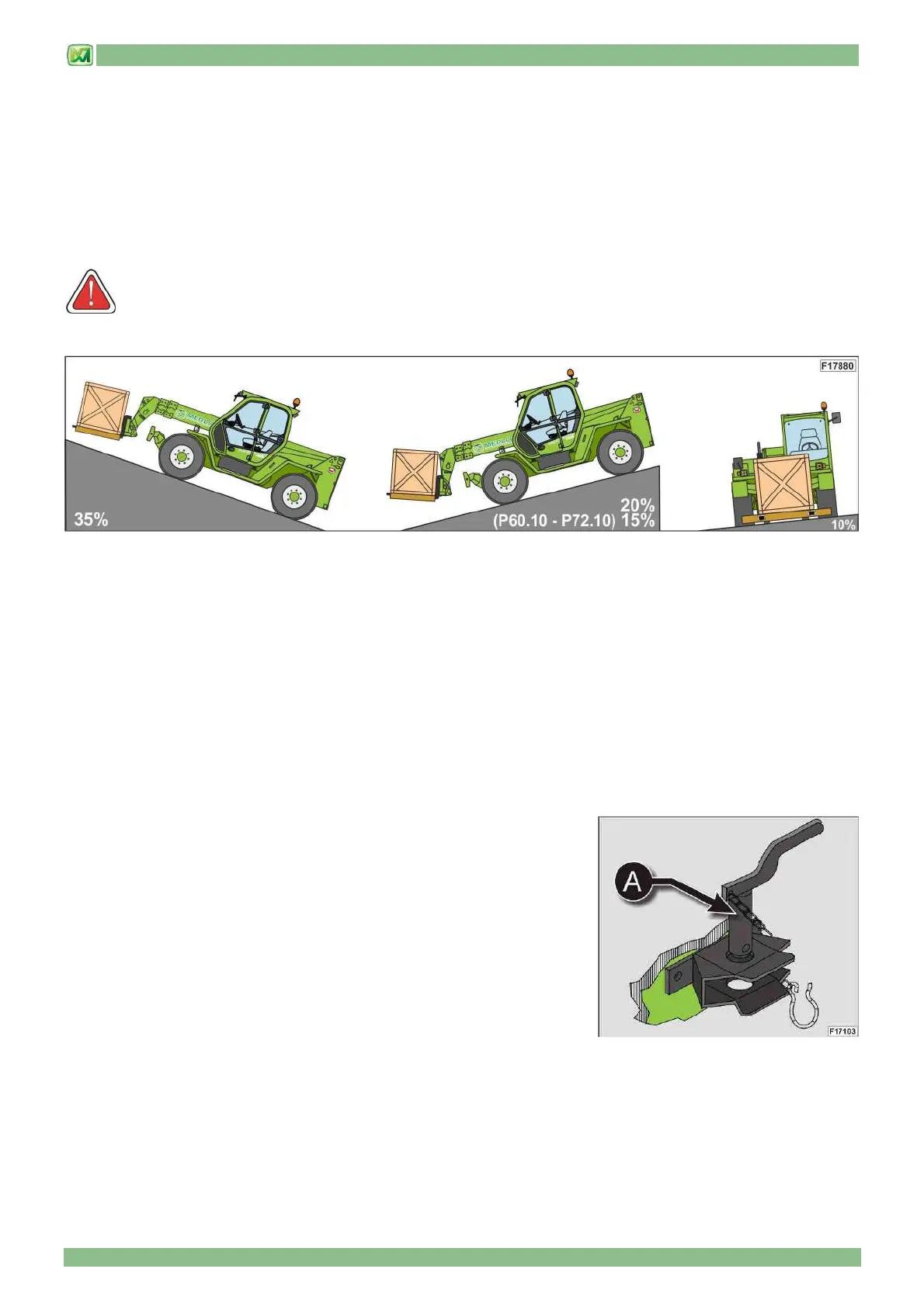 35% with the load to the front, 20% (15% for the models P60.10 - P60.10EE - P72.10 - P72.10EE) with the load to the