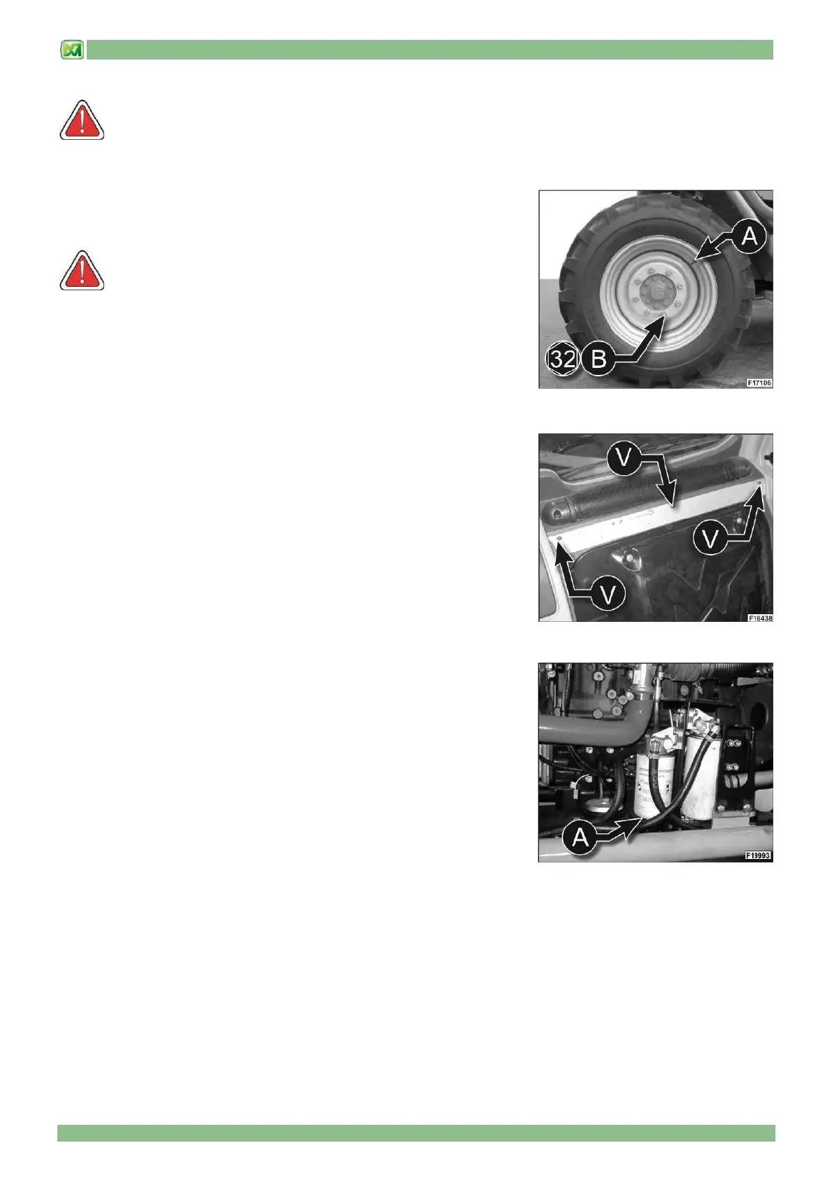 Check the tightening (550 Nm) of the wheel locking stud bolts (B).