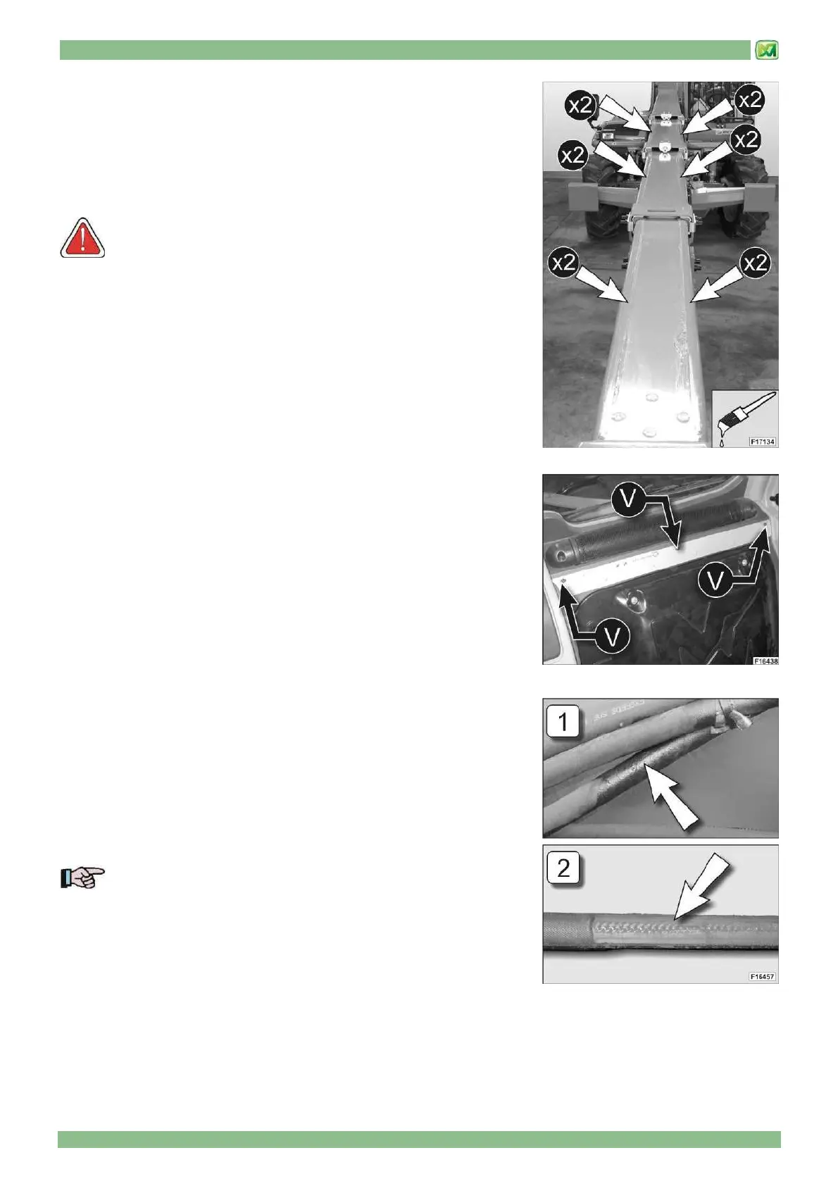 2) visual check for any marks on the hydraulic hoses which might be indicative of