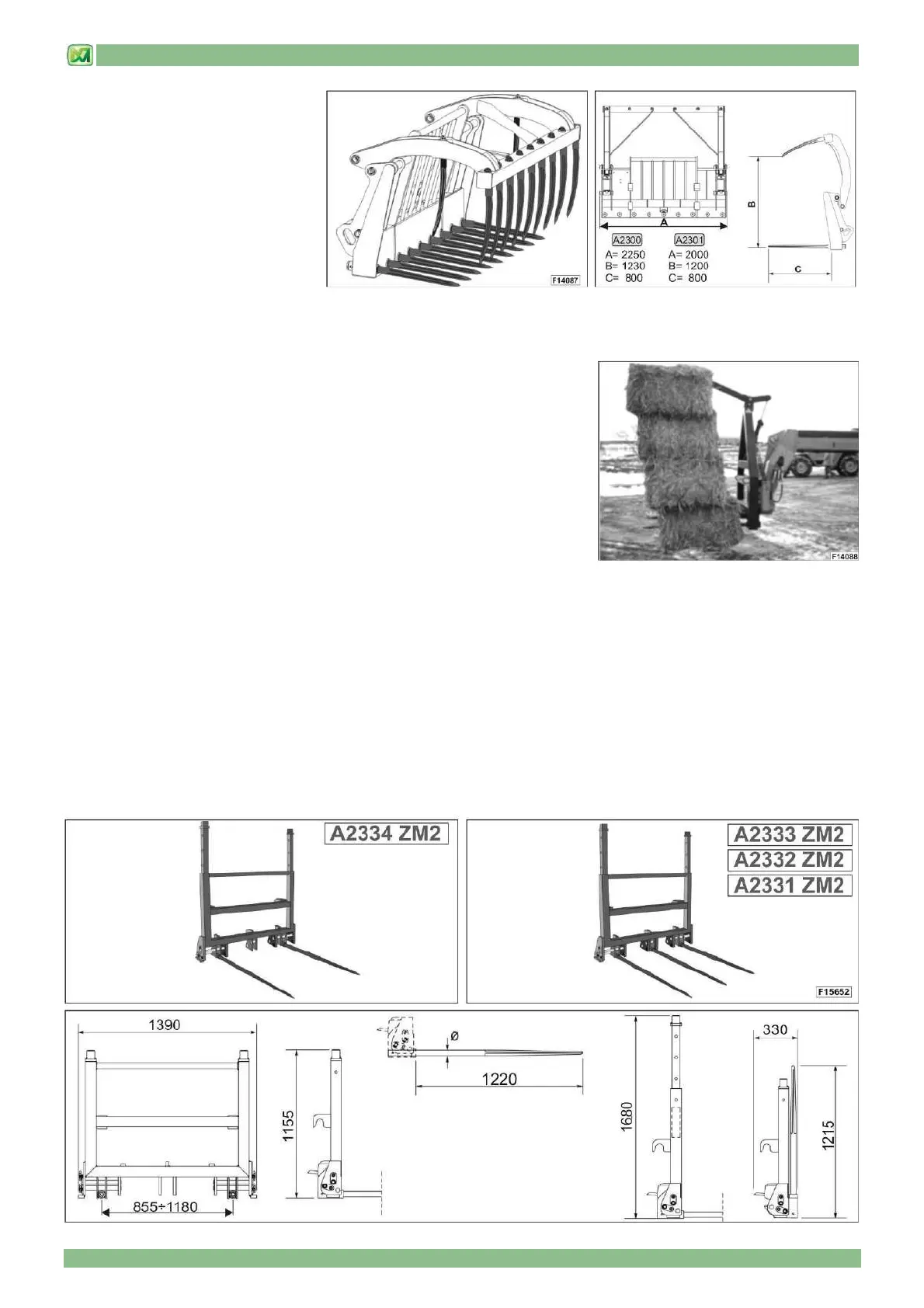 - Attachment:capacity (A2300) = 1200 kg; (A2301) = 1000 kg