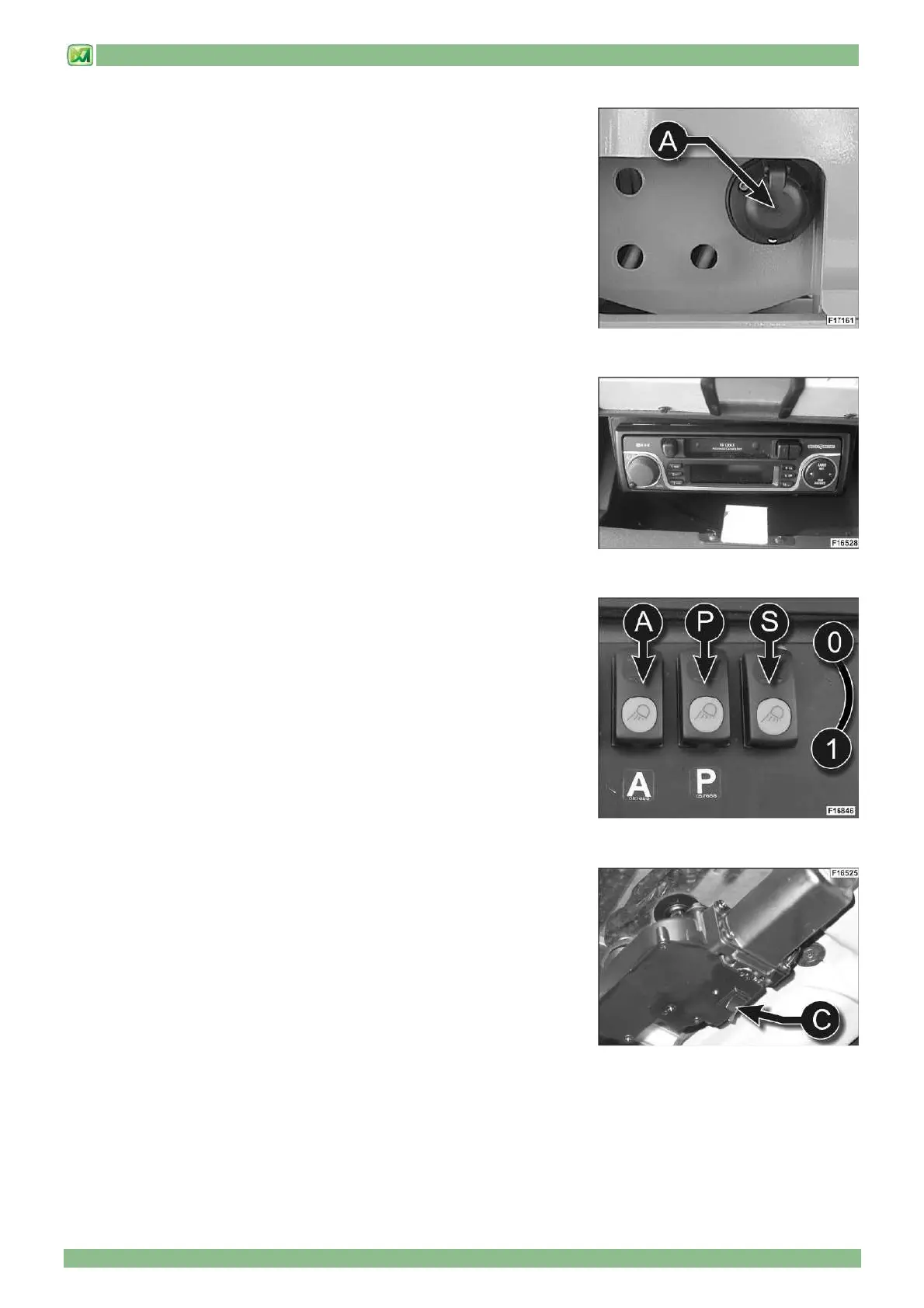 - Press the button (A) to switch on the front work headlights.