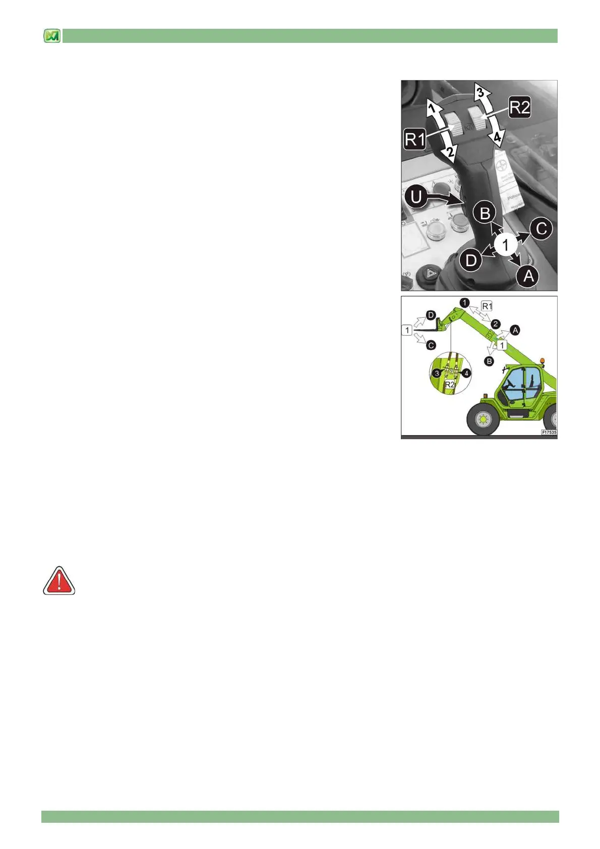 The first two movements are carried out by moving the joystick in the longitudinal