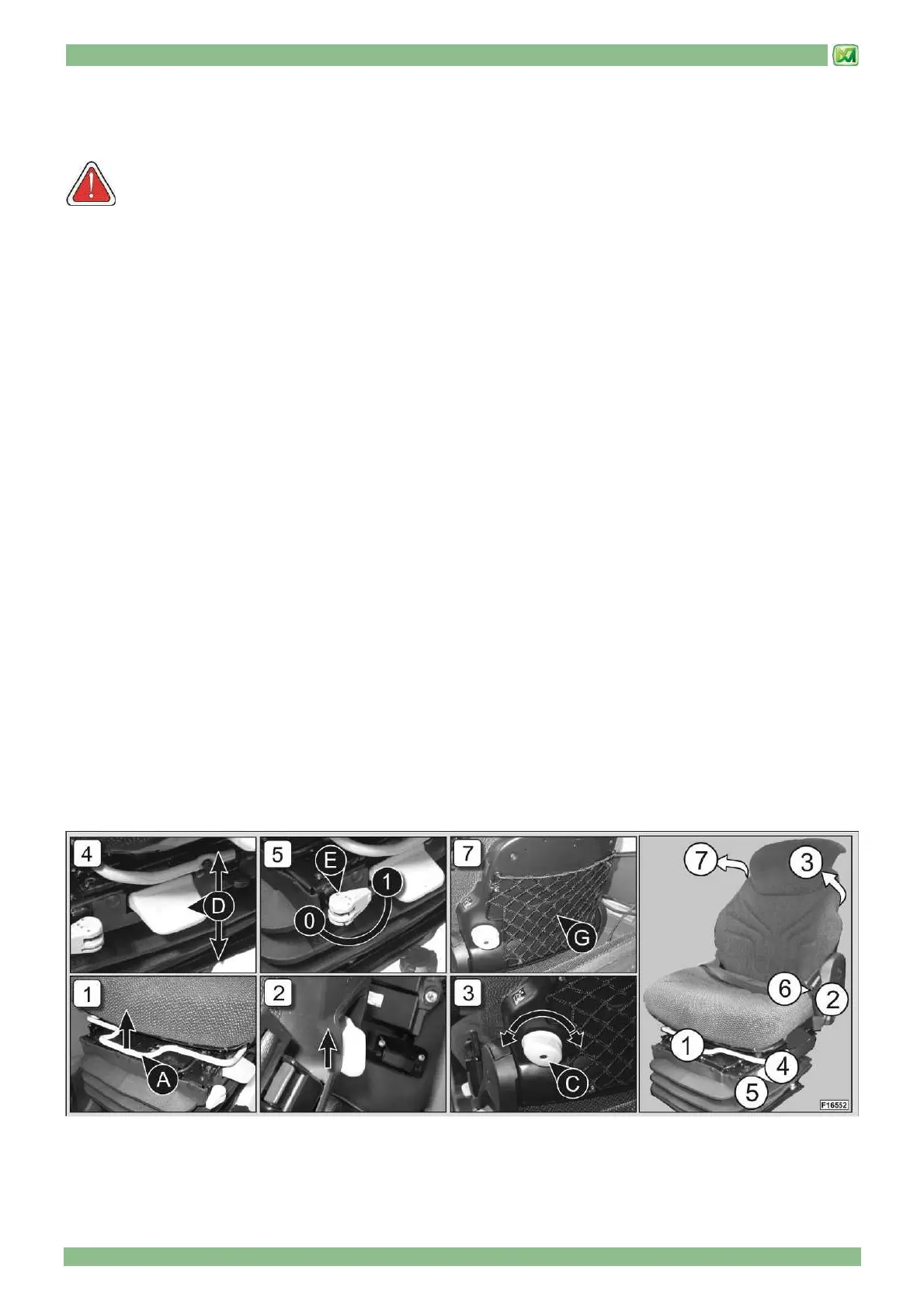 The pneumatic seat Grammer is installed in place of the standard one. Therefore, the following instructions replace those found