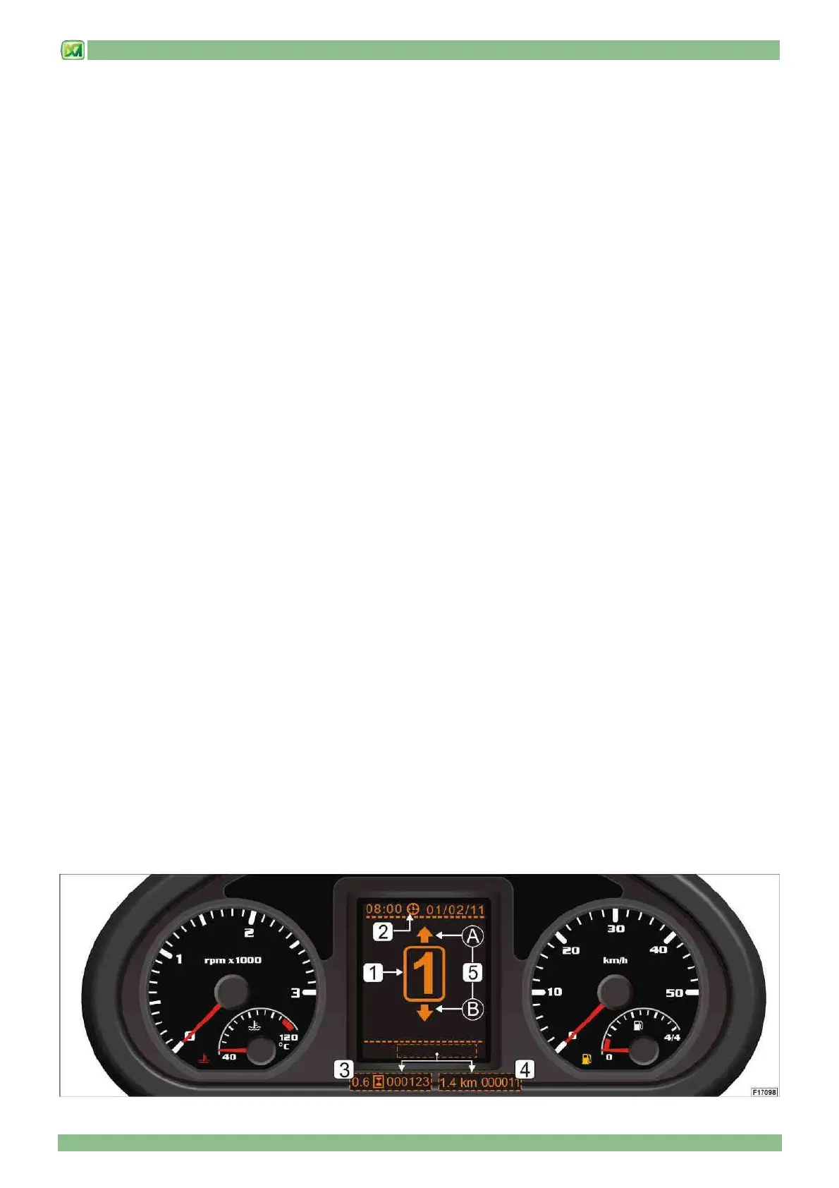 indicator light showing the lettering "km") or the information of the partial hour counter / total hour counter (separated by an