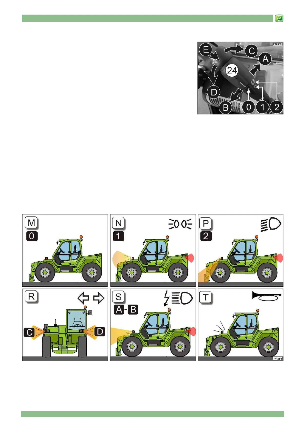 To switch on the low-beam lights, turn the switch of control lever (24) to position "2"