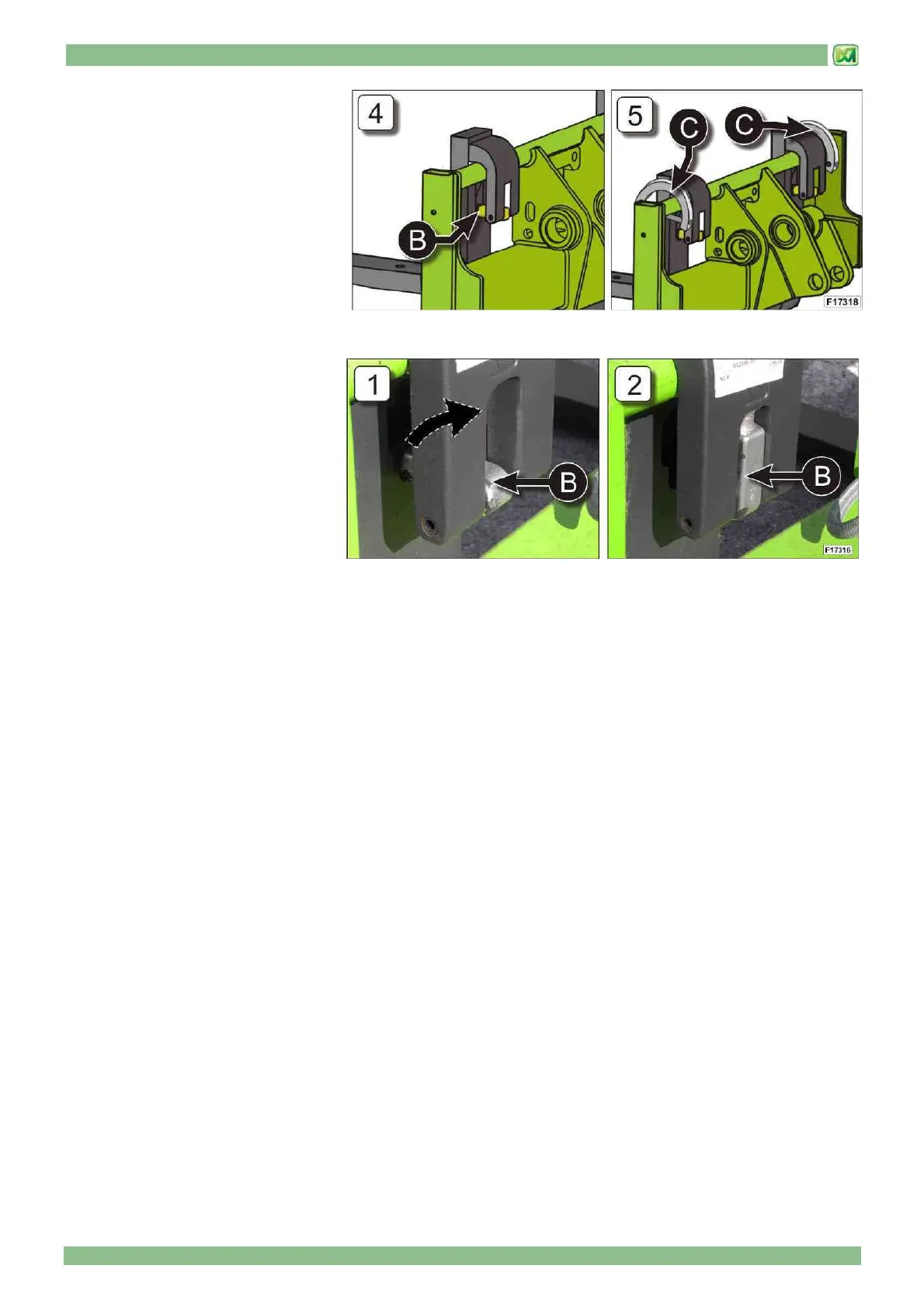 - lift pin 'B' from its safety position (Fig. 1) to a released position (Fig. 2), and check that it is kept in a lifted position