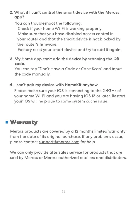Meross products are covered by a 12 months limited warranty