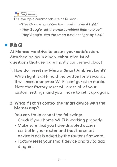1. How do I reset my Meross Smart Ambient Light?