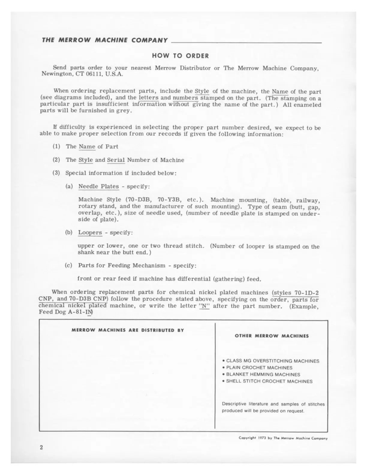 Merrow Class 70 - Merrow Machine Parts Ordering