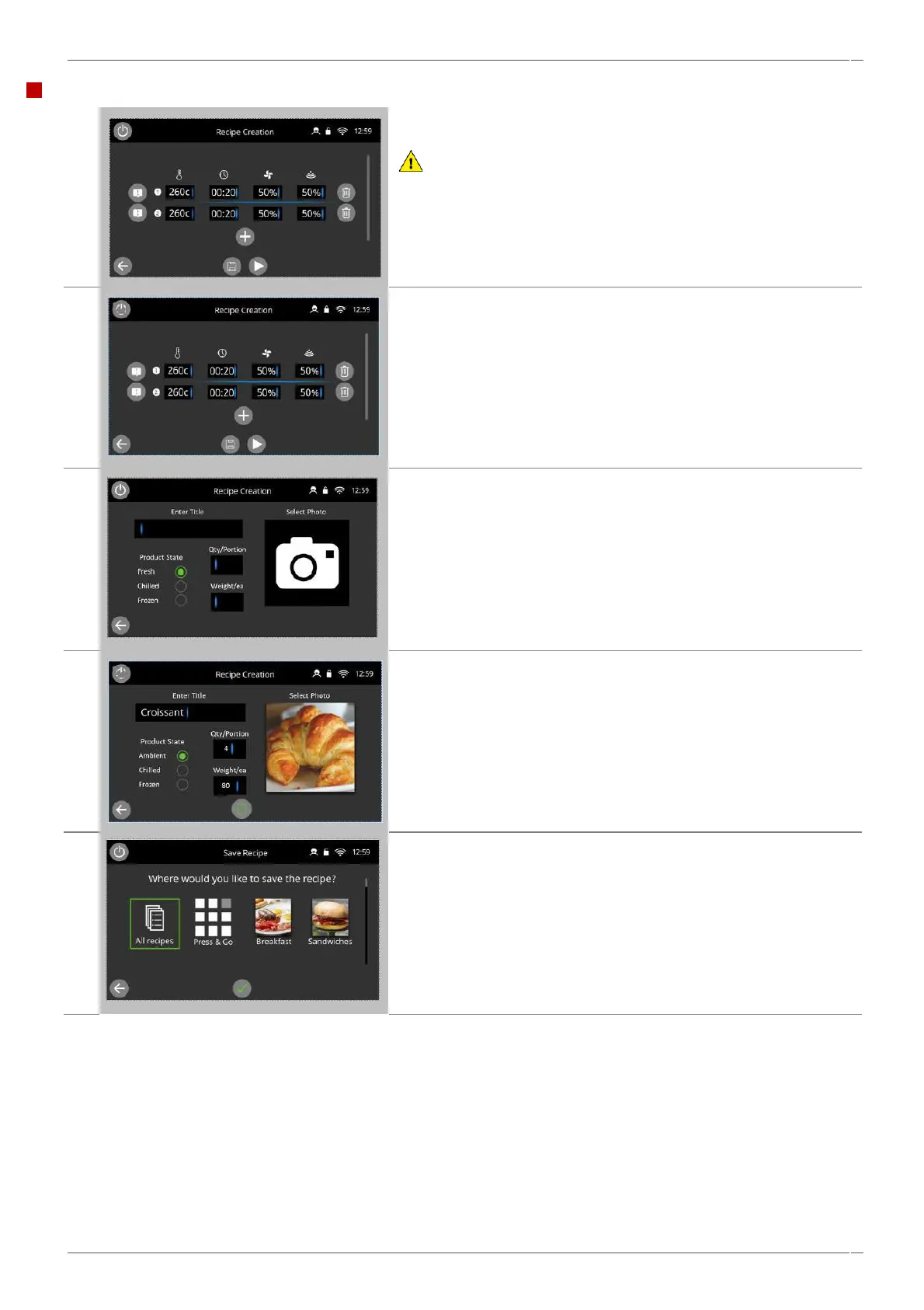 Select the 'save' symbol to record the cooking profile to the cookbook.