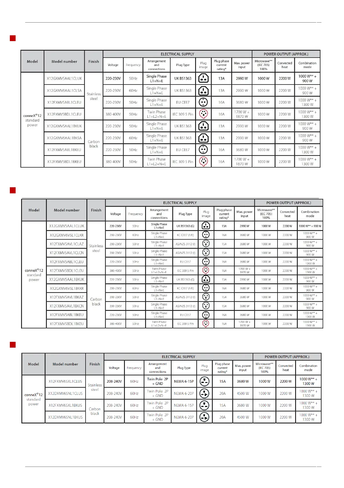 Electrical configurations Standard power version conneX