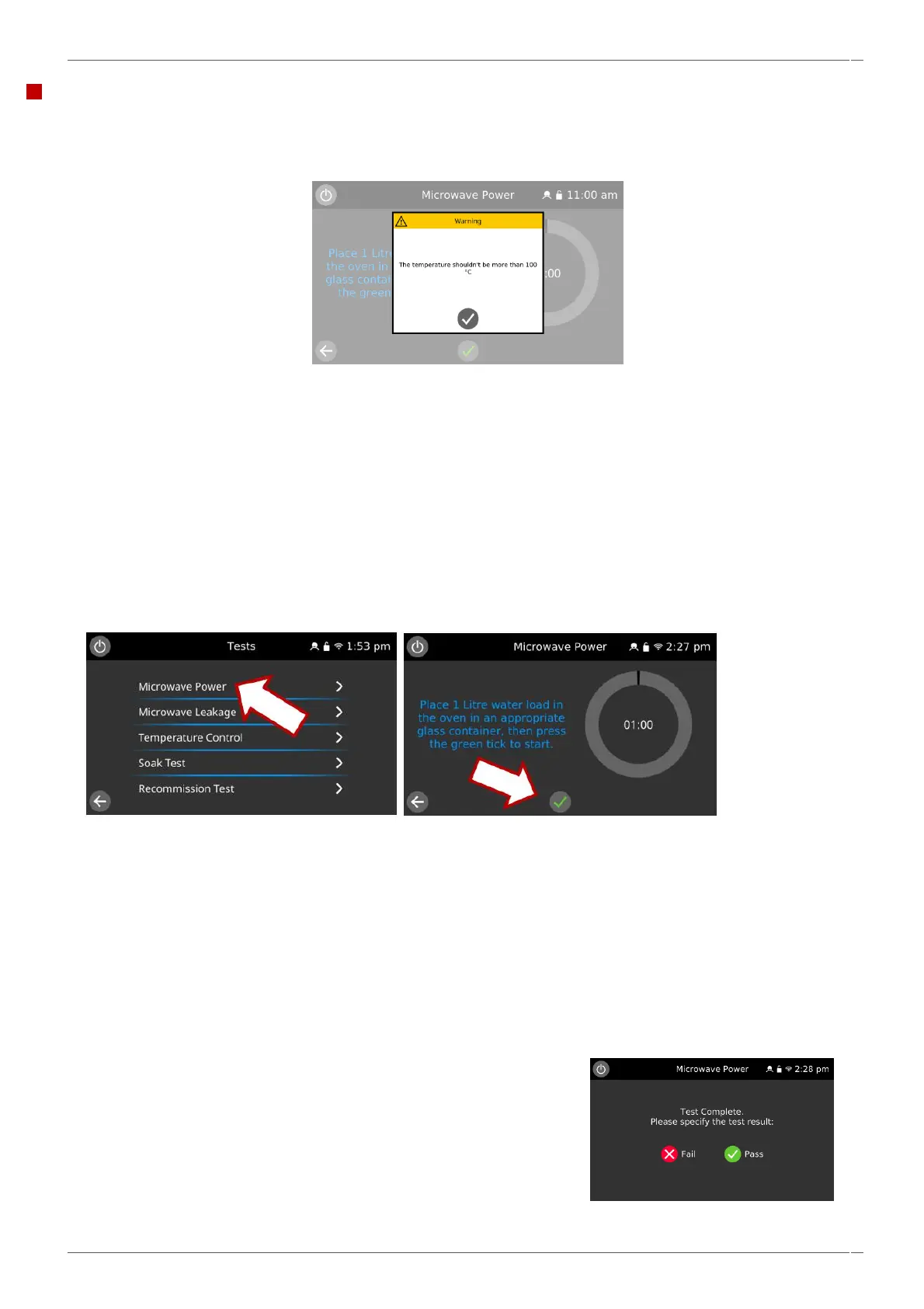 6. Select ‘Microwave Power’ from the service settings tests (microwave power 100% for 60 seconds, convection fan at